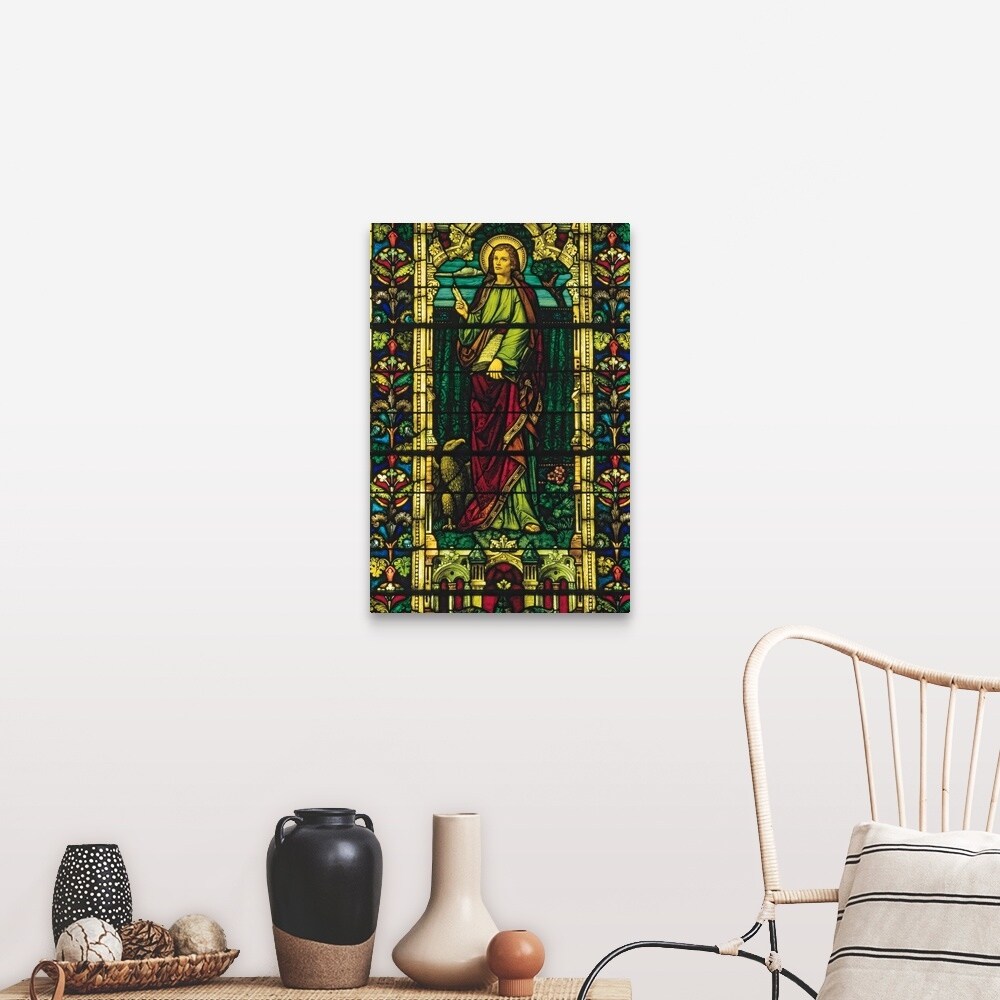 "St. John Depicted in Stained Glass Window" Canvas Wall Art
