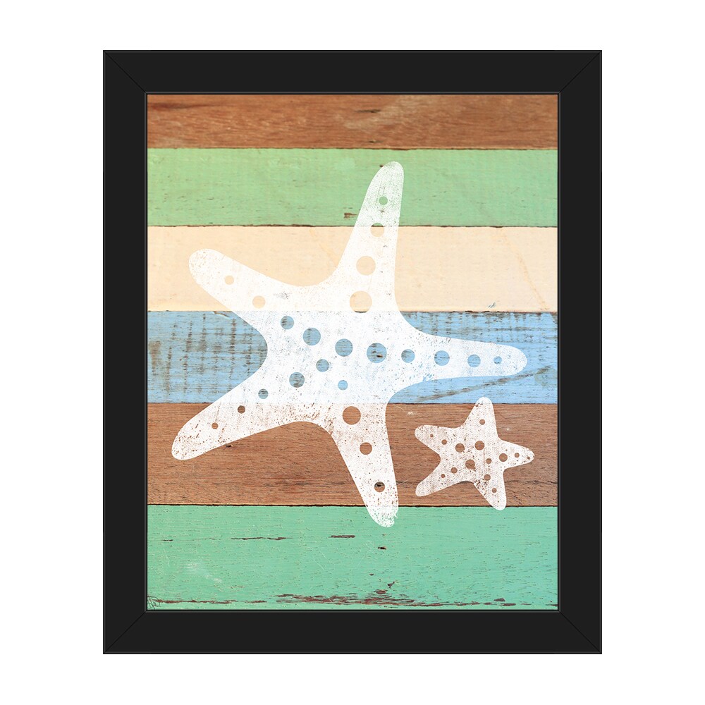 Designart "Starfish And Seashells Ii" Modern Landscape Beach Framed Wall Decor
