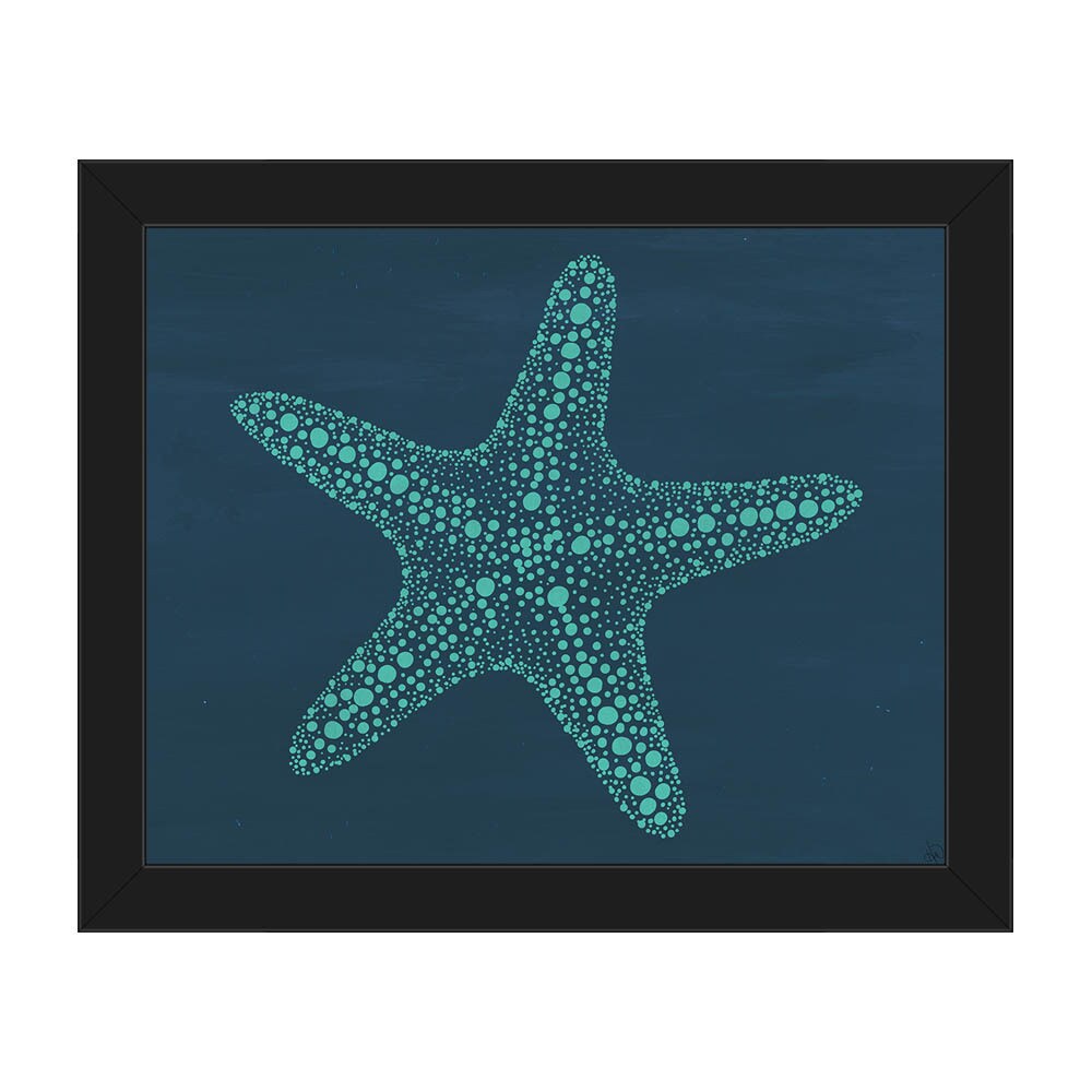 Starfish Dots in Teal Framed Canvas Wall Art Print