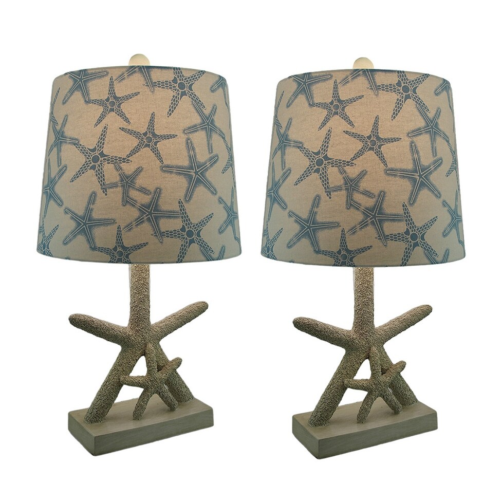 Star of the Sea Starfish Table Lamp W/Printed Fabric Shade Set of 2 - 21.5 X 11.5 X 11.5 inches