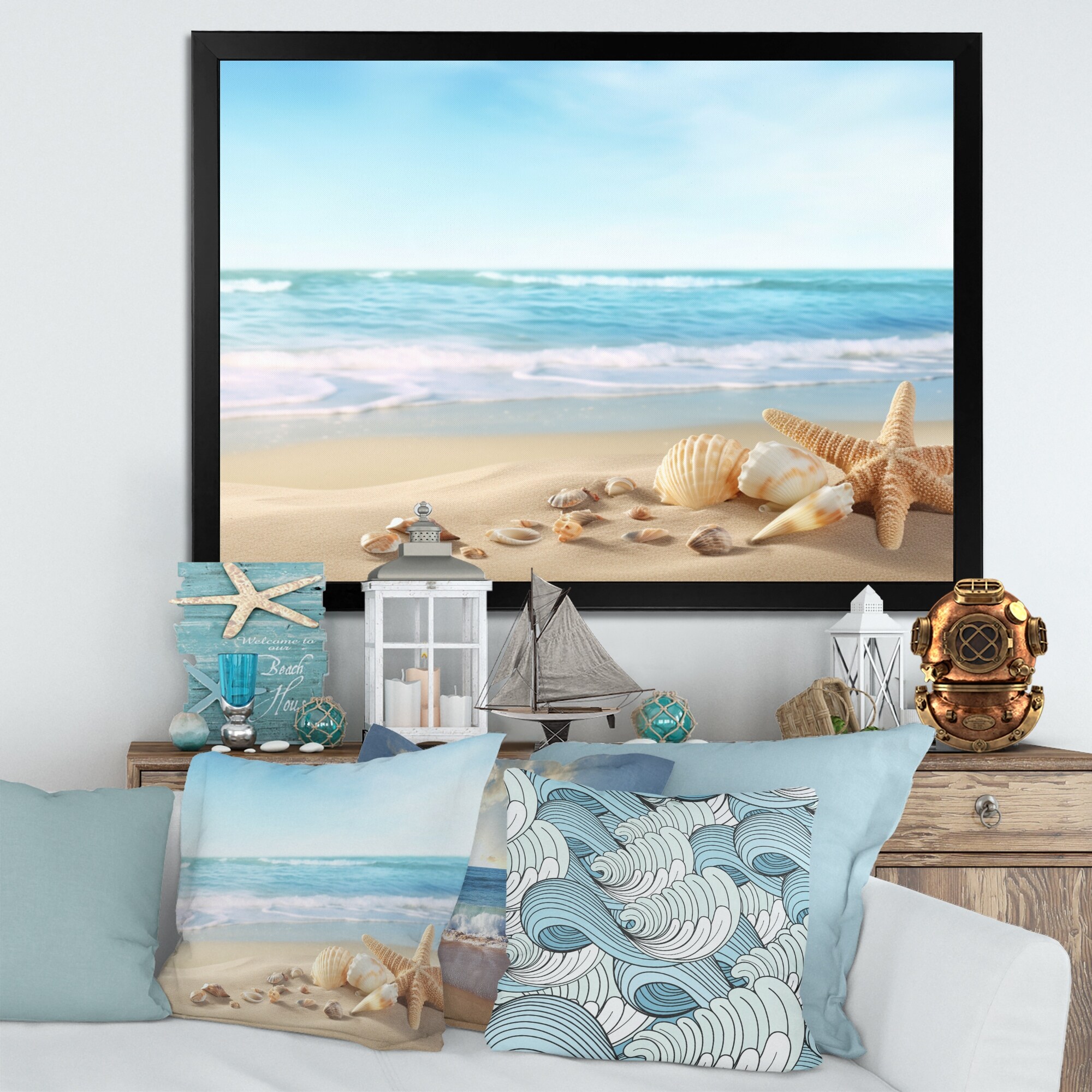Designart "Starfish And Seashells I" Modern Landscape Beach Framed Canvas Wall Art