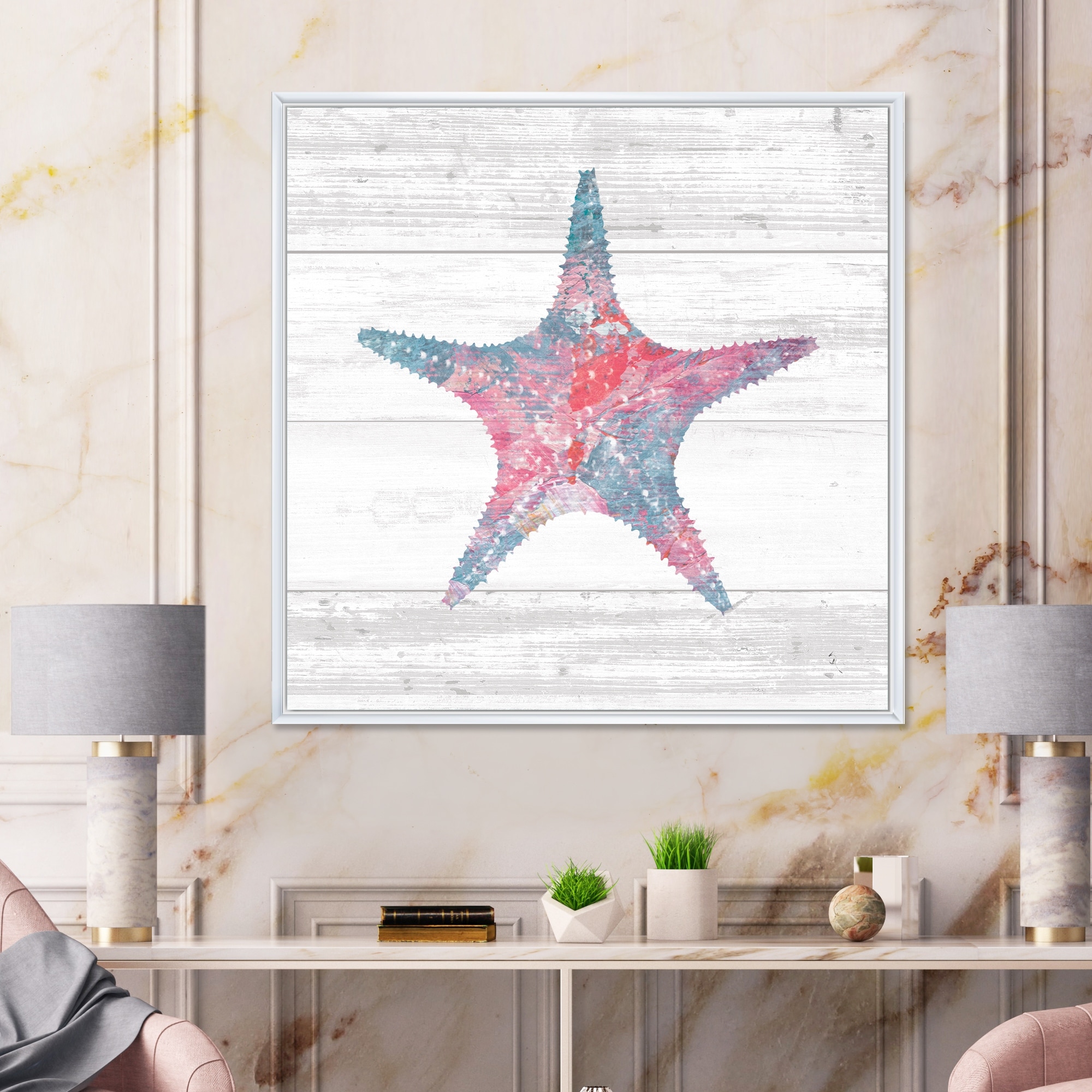 Designart "Pink Starfish Ocean Life" Nautical & Coastal Framed Canvas