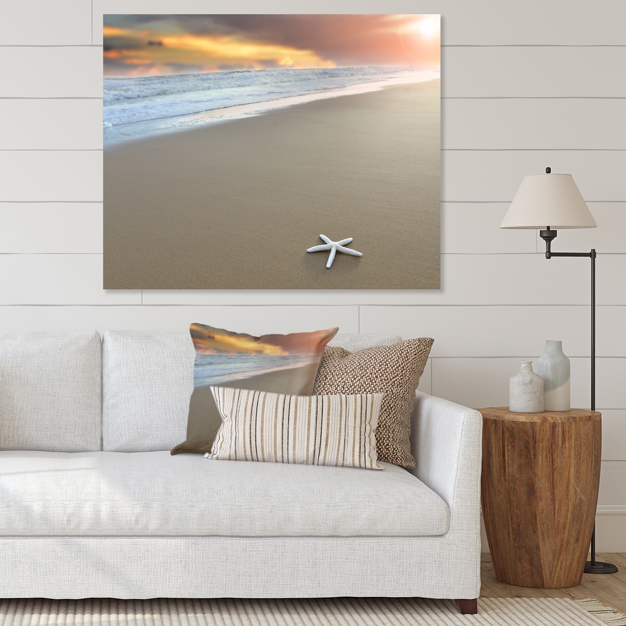 Designart "Starfish On A Beach" Nautical & Coastal Canvas Wall Art Print