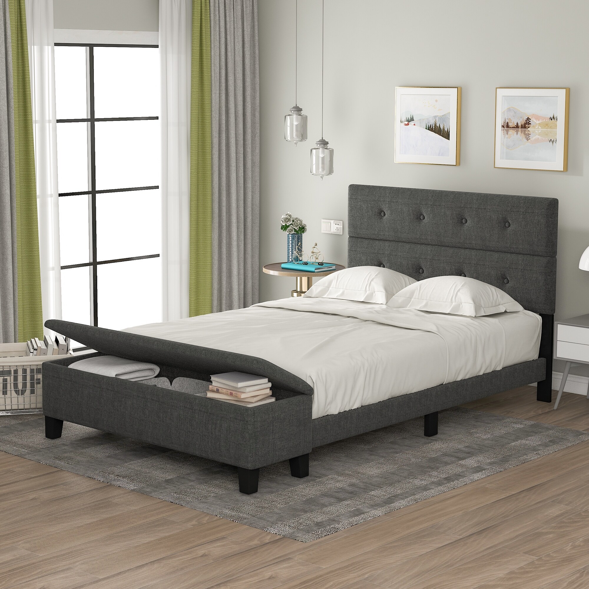 Elegant Upholstered Full Size Platform Bed with Storage Case,Sophisticated Stitching, Button Tufting and Neutral-toned Fabric
