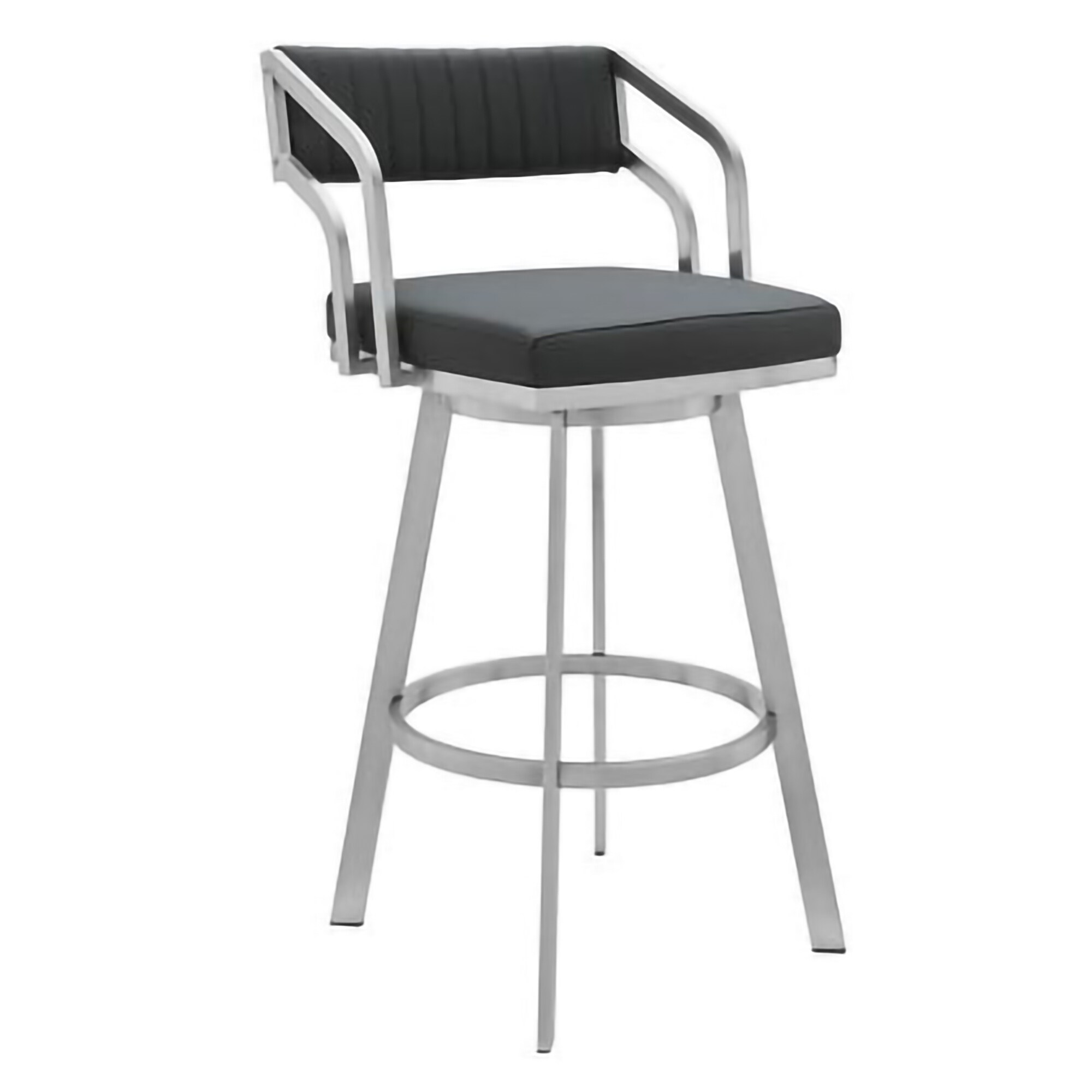 Swivel Barstool with Horizontal Channel Stitching, Silver and Gray
