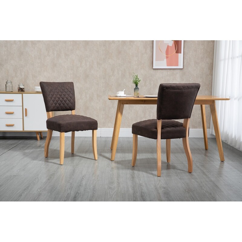Upholstered Diamond Stitching Dining Chair with Solid Wood Legs