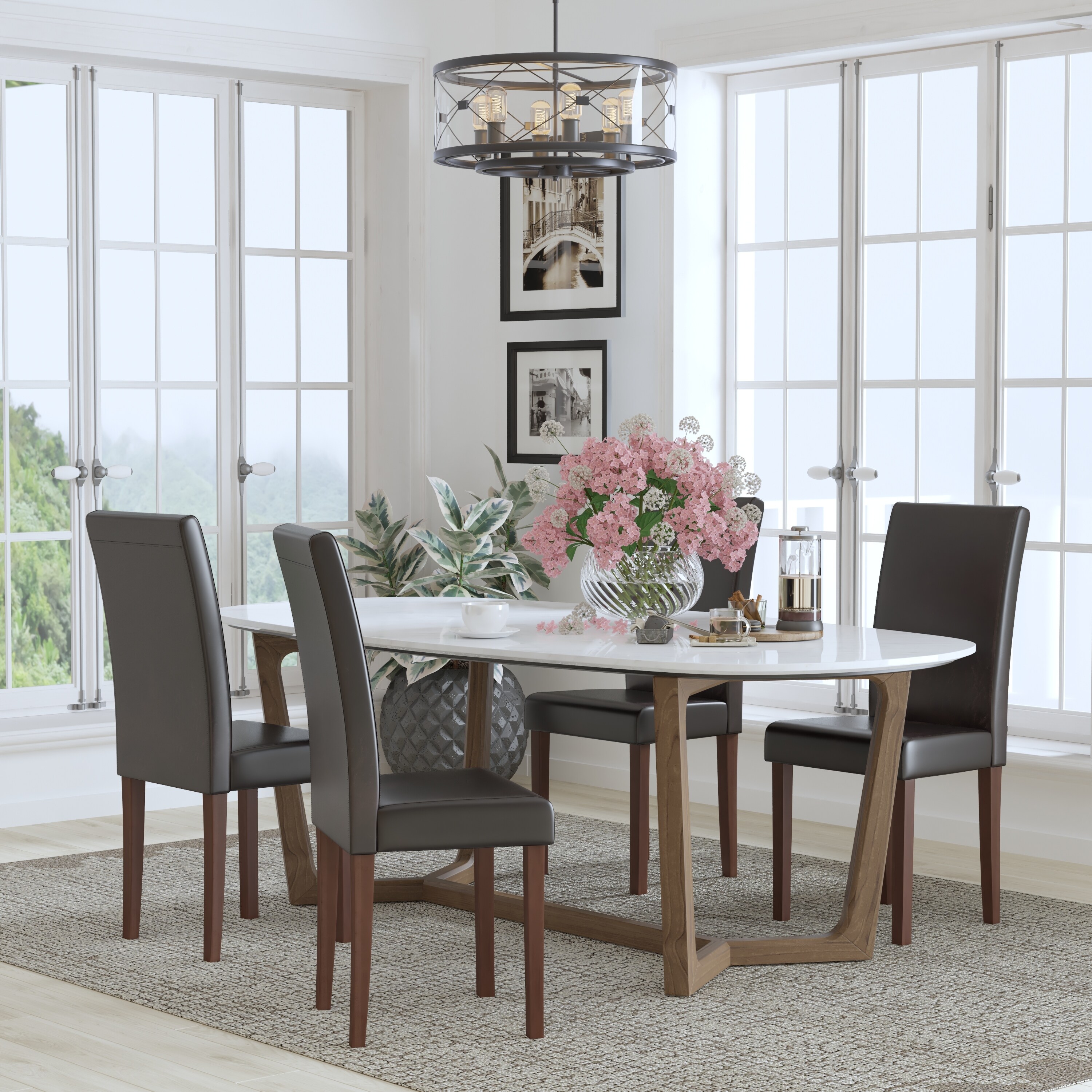 Leatherette Dining Chair with Horizontal Stitching, Set of 2, Brown