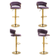 Set of 4 Bar Stool Adjustable Swivel with Gold Frame