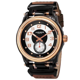 Akribos XXIV Men's Quartz Date Aperture Leather Rose-Tone Strap Watch - Gold