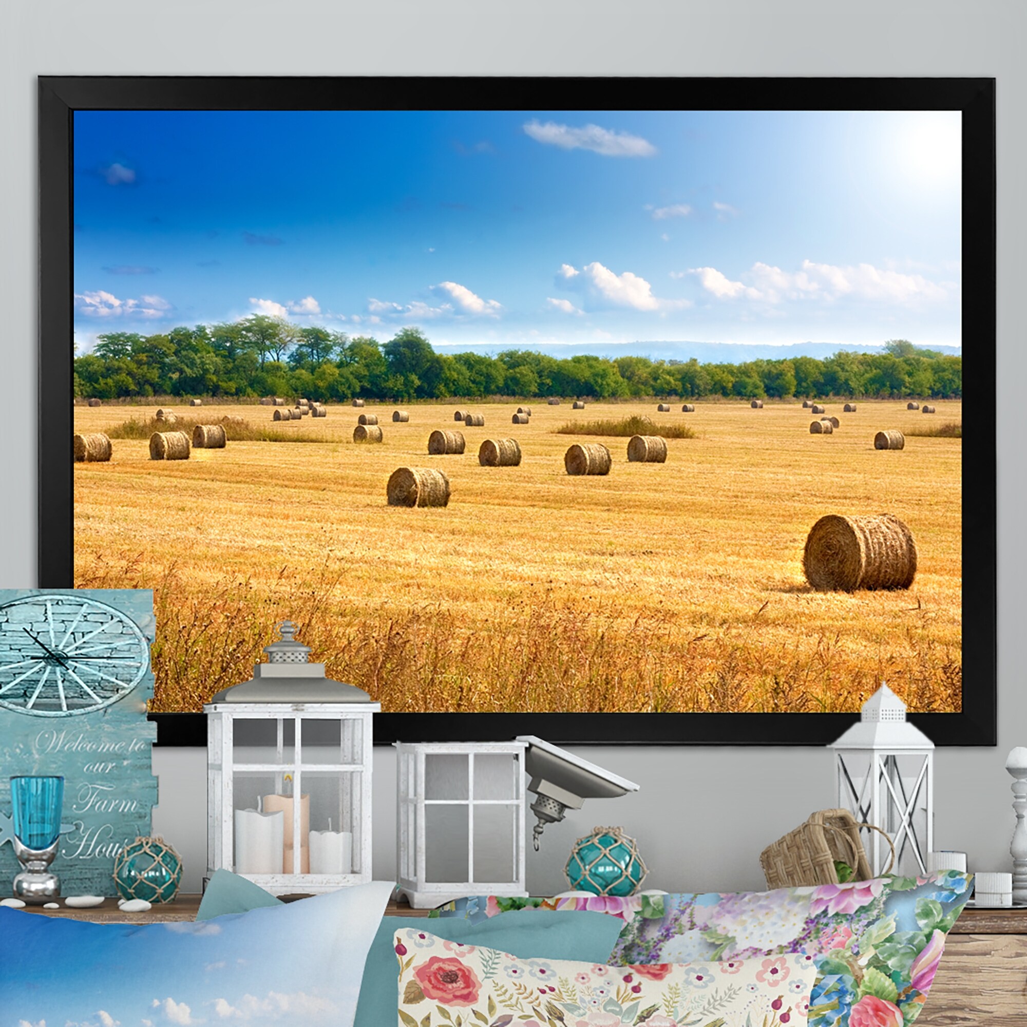 Designart "Straw Bales Landscape" Traditional Framed Art Print