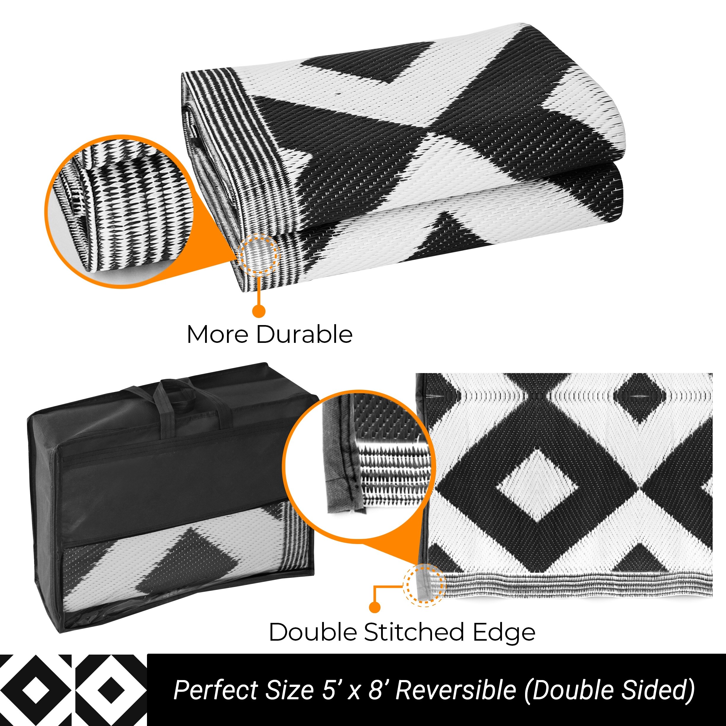 Laura Benasse White Black Outdoor Plastic Straw Rug Geometric Waterproof Reversible