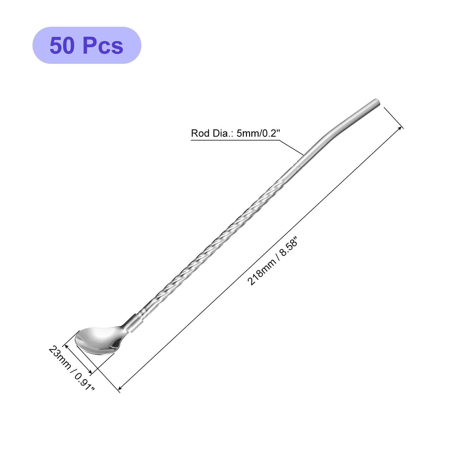 50Pcs 8.6" Stainless Steel Spoon Straws Reusable Twist Handle Spoon