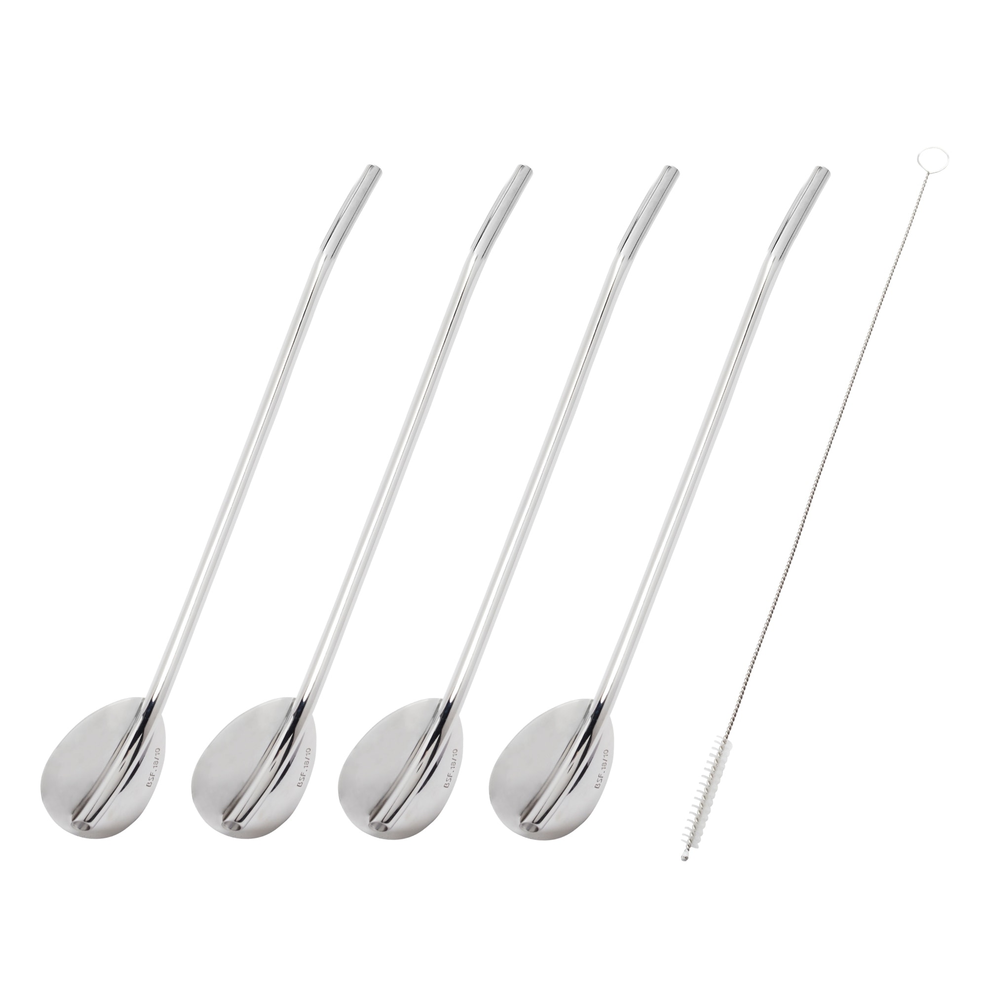 4Pcs 8.7" Stainless Steel Spoon Straw Reusable Long Handle Straw Spoon