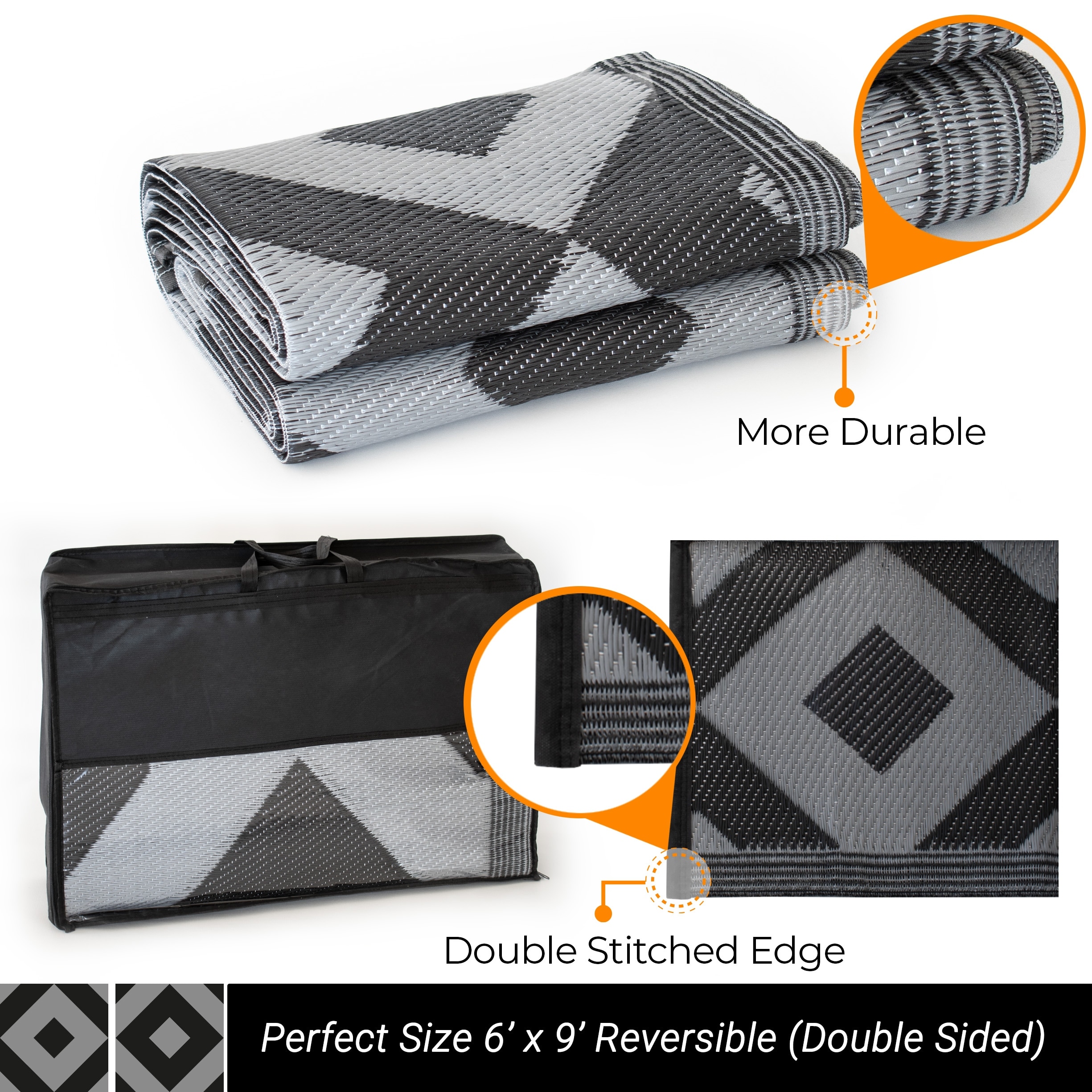 Laura Benasse Gray Black Outdoor Plastic Straw Rug Geometric Waterproof Reversible
