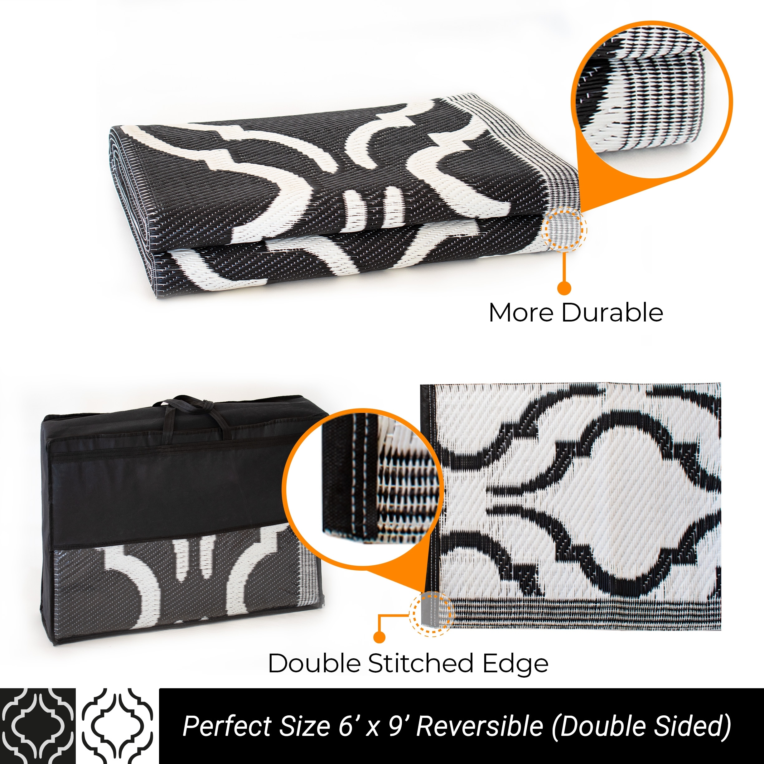 Laura Benasse White Black Outdoor Plastic Straw Rug Moroccon Waterproof Reversible