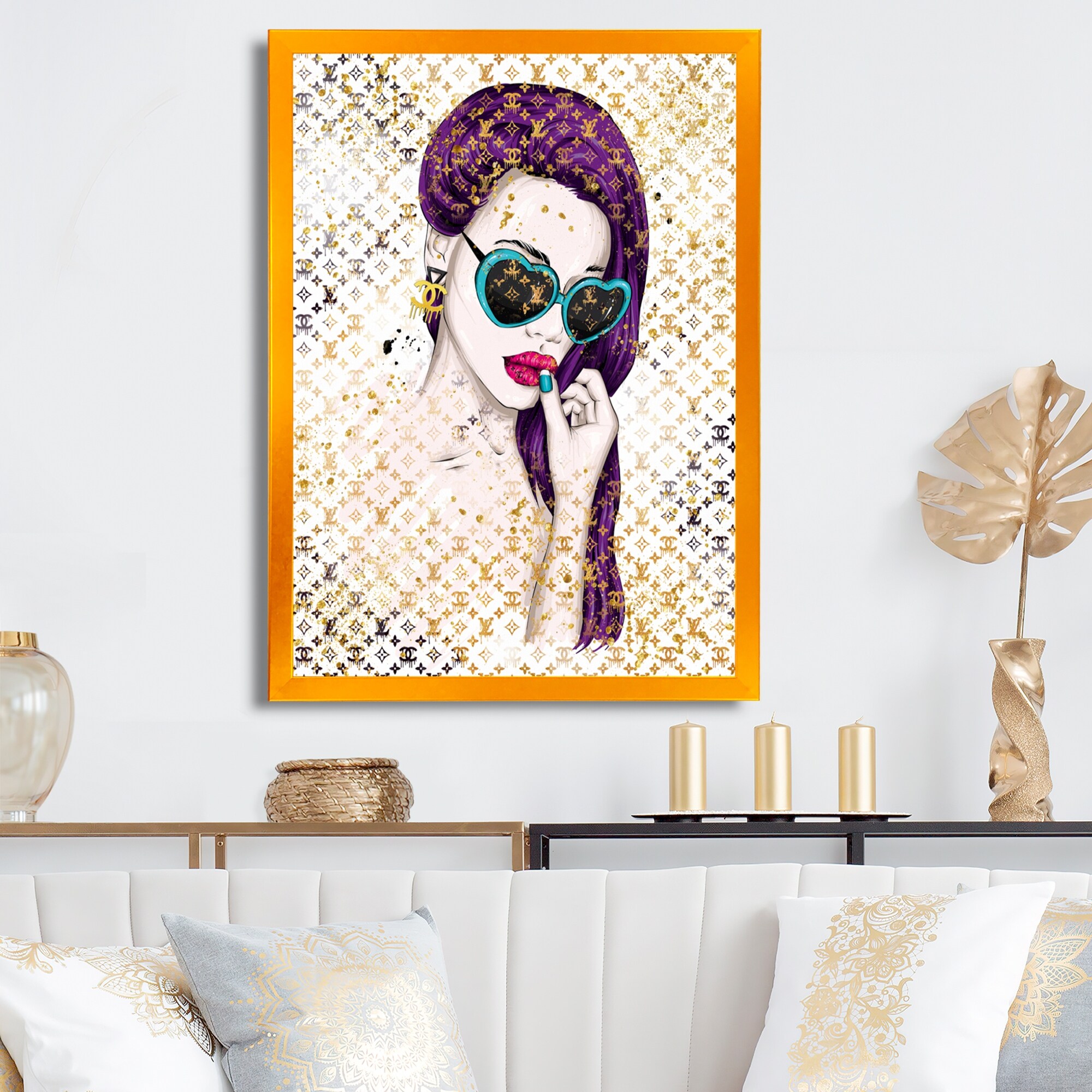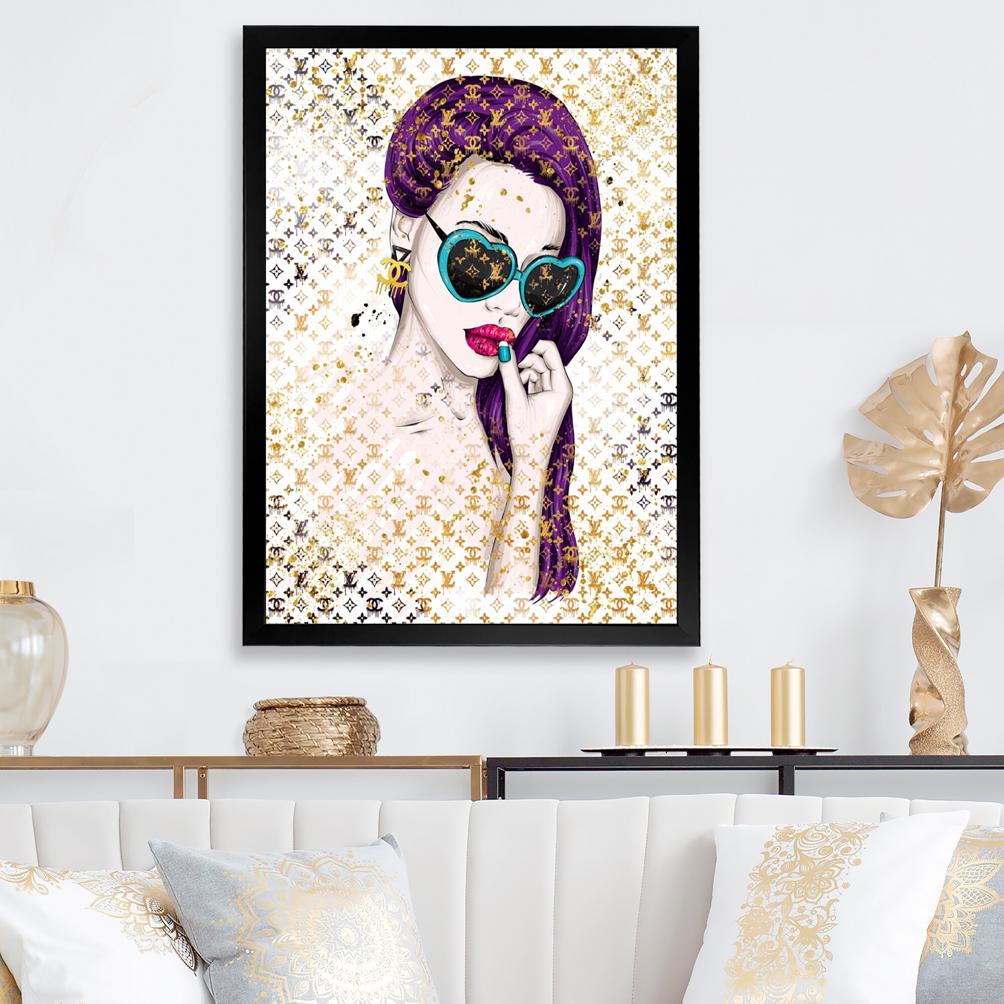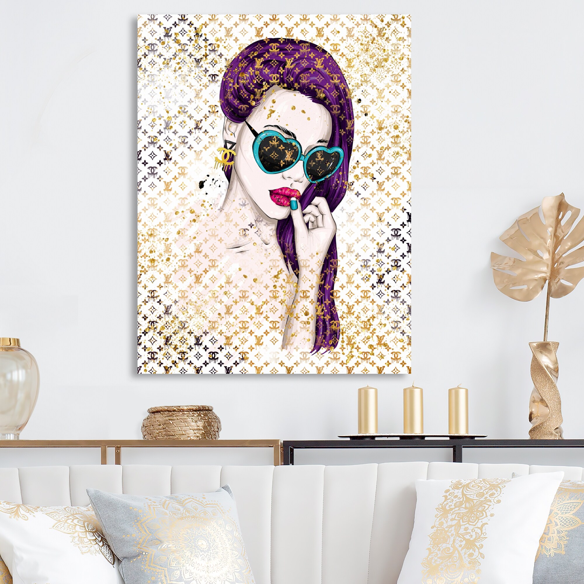 Designart "Girl With Purple Hair And Blue Sunglasses" Modern Canvas Wall Art Print