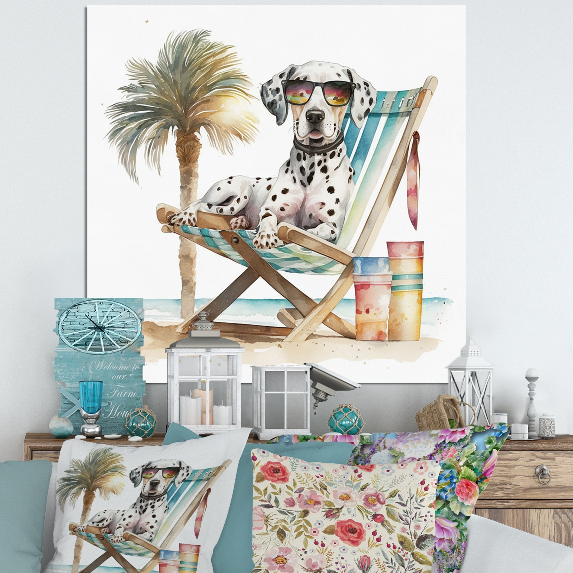 Designart 'Dog Lounging on the Beach With Sunglasses II' Animals Canvas Wall Art
