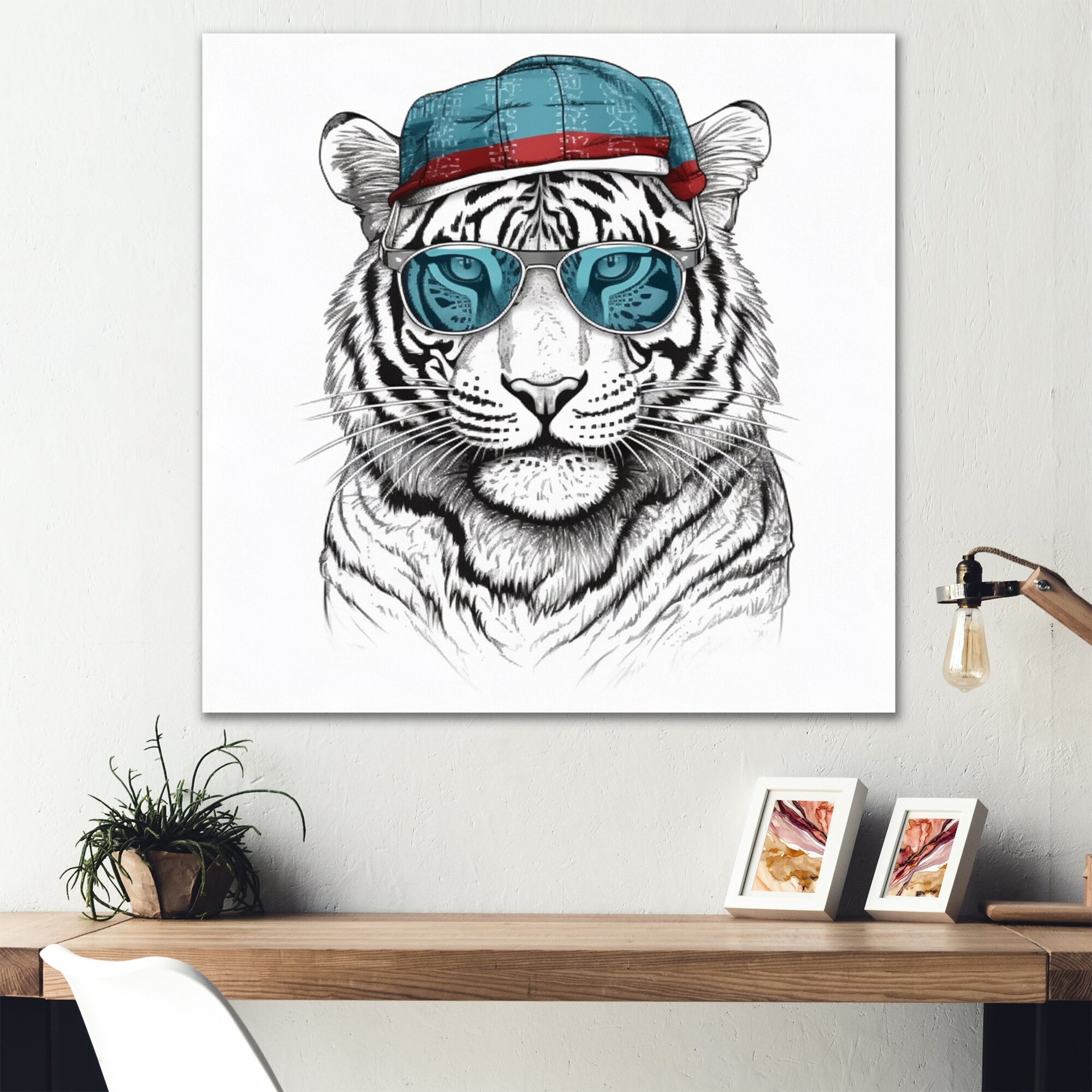 Designart "Blue Grey Tiger With Sunglasses" Animals Tiger Fashion Wall Decor