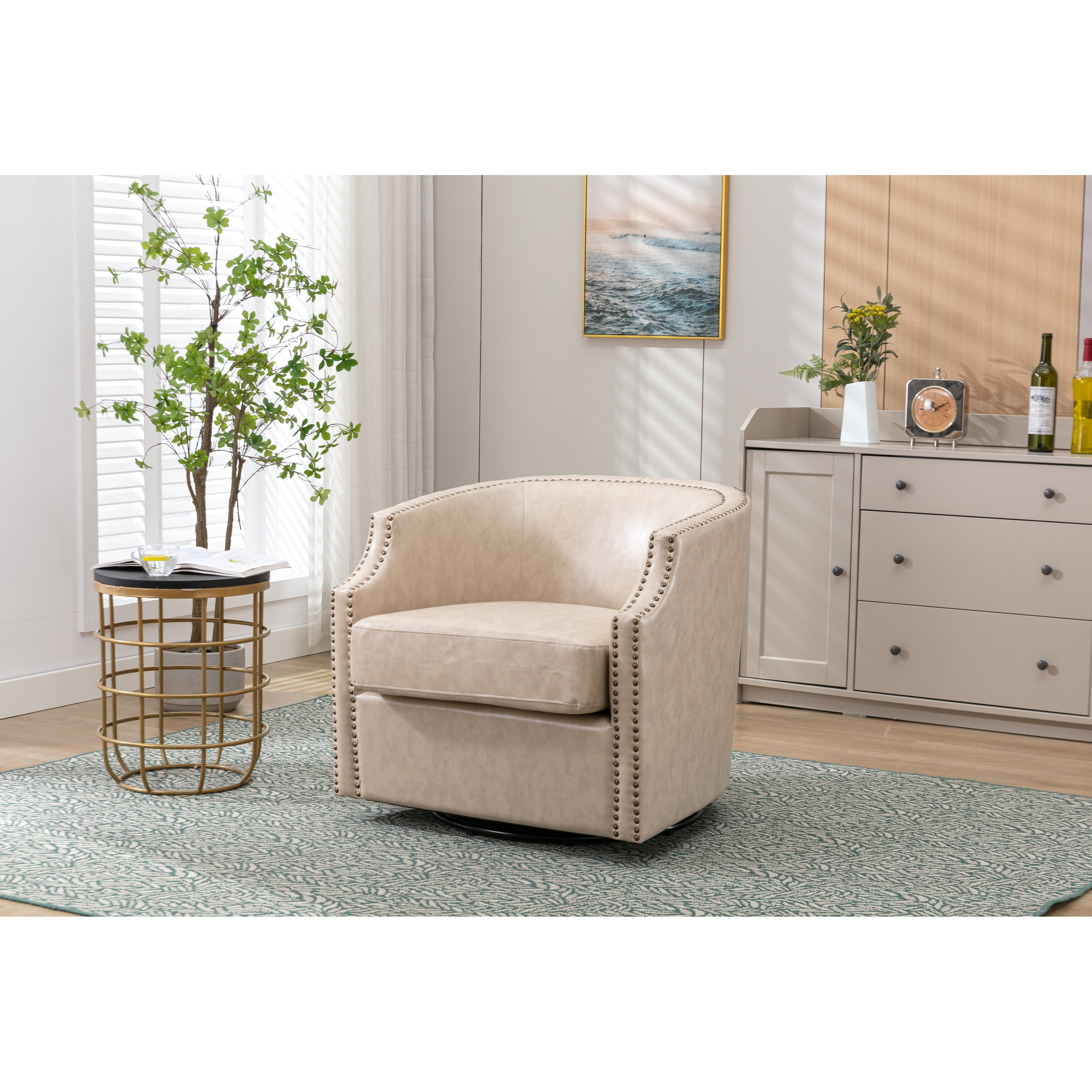Living Room Accent Chairs Swivel Chair Modern Small Club Arm Chairs Lounge Chairs with Nailheads Barrel Chair, Beige