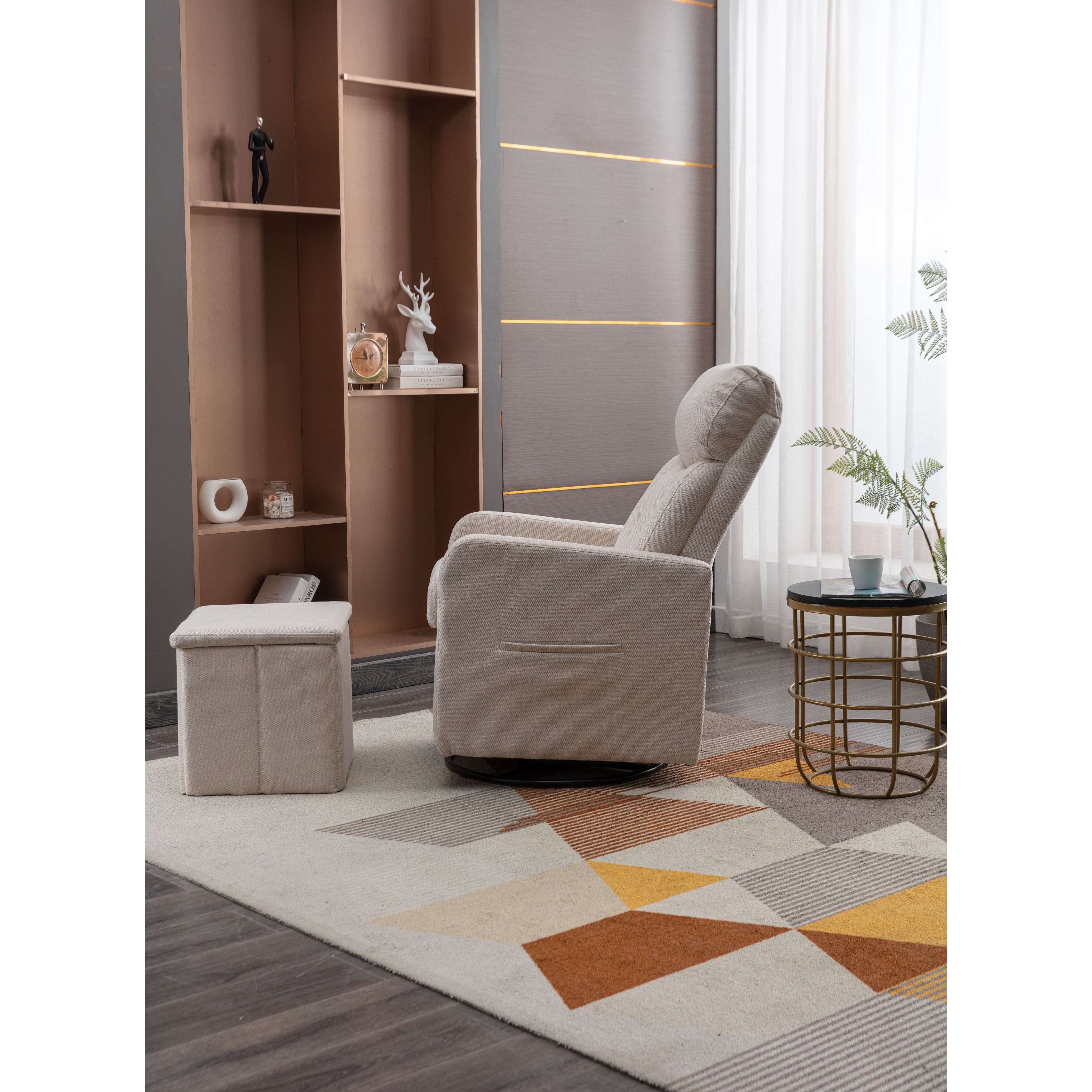 Nordic Style Cotton Linen Swivel Chair Rocking Chair With Ottoman