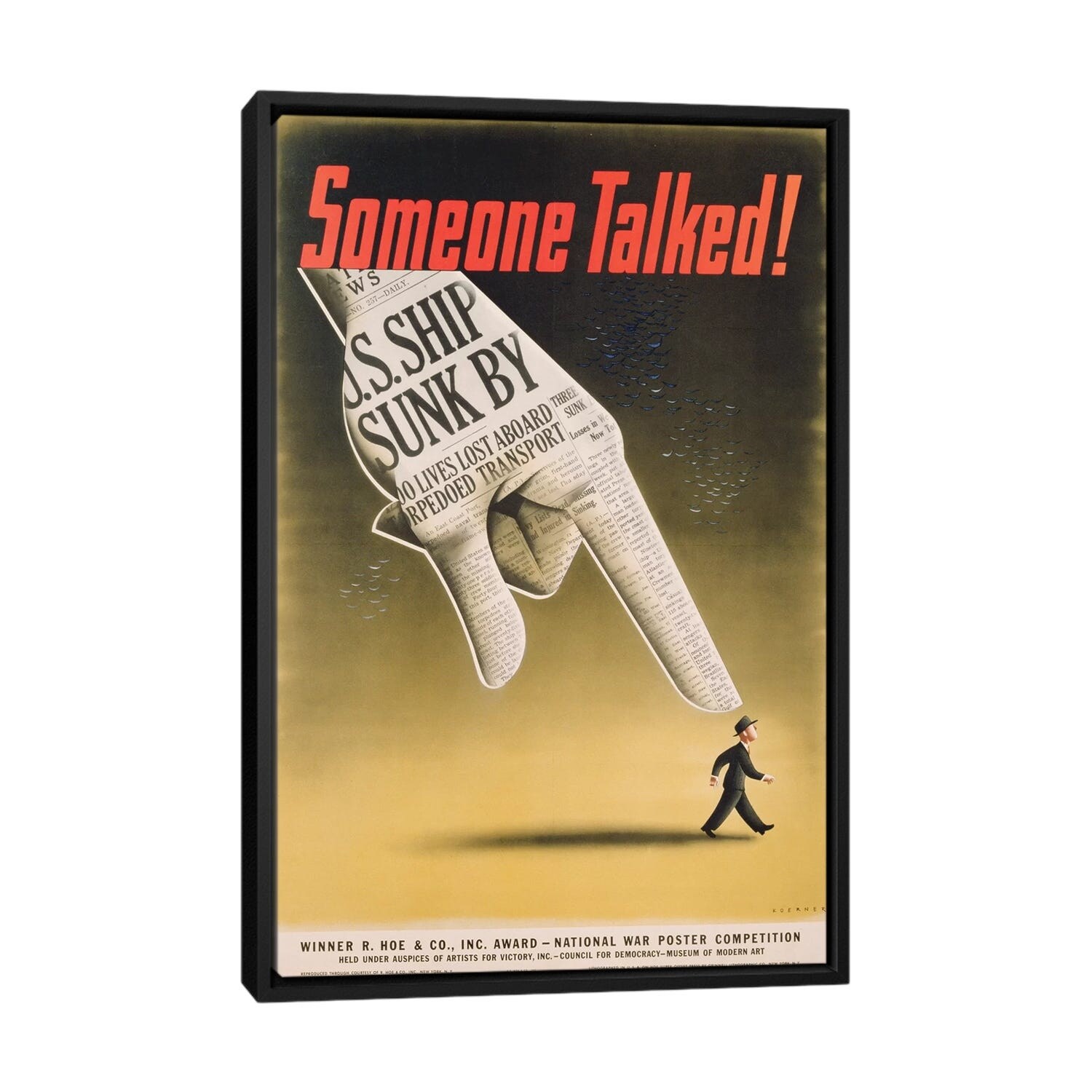 iCanvas "Someone Talked U.S. Ship Sunk By.., American poster " by American School Framed Canvas Print
