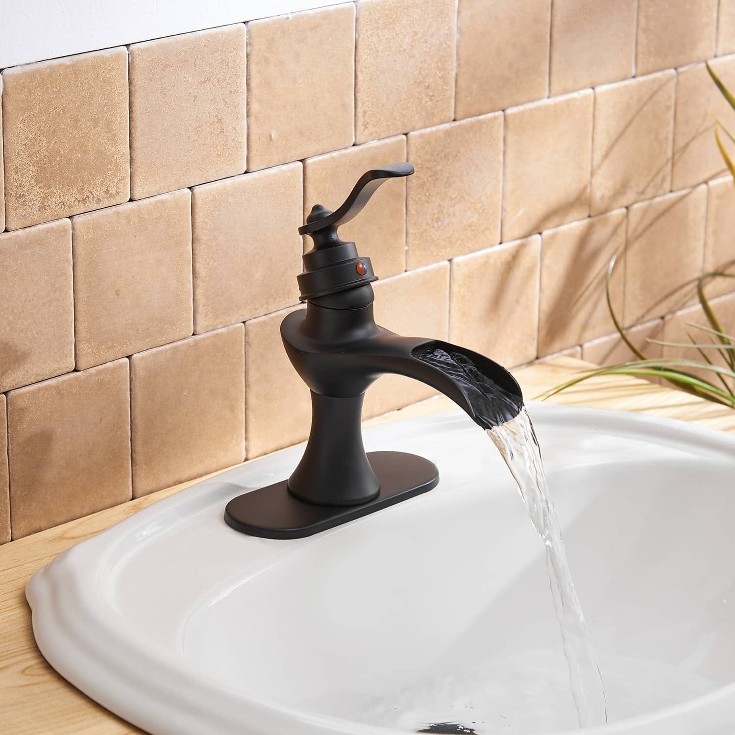 Waterfall Bathroom Sink Faucet Single Handle Modern Single Hole Bathroom Faucets Basin Vanity Taps With Valve And Deck Plate