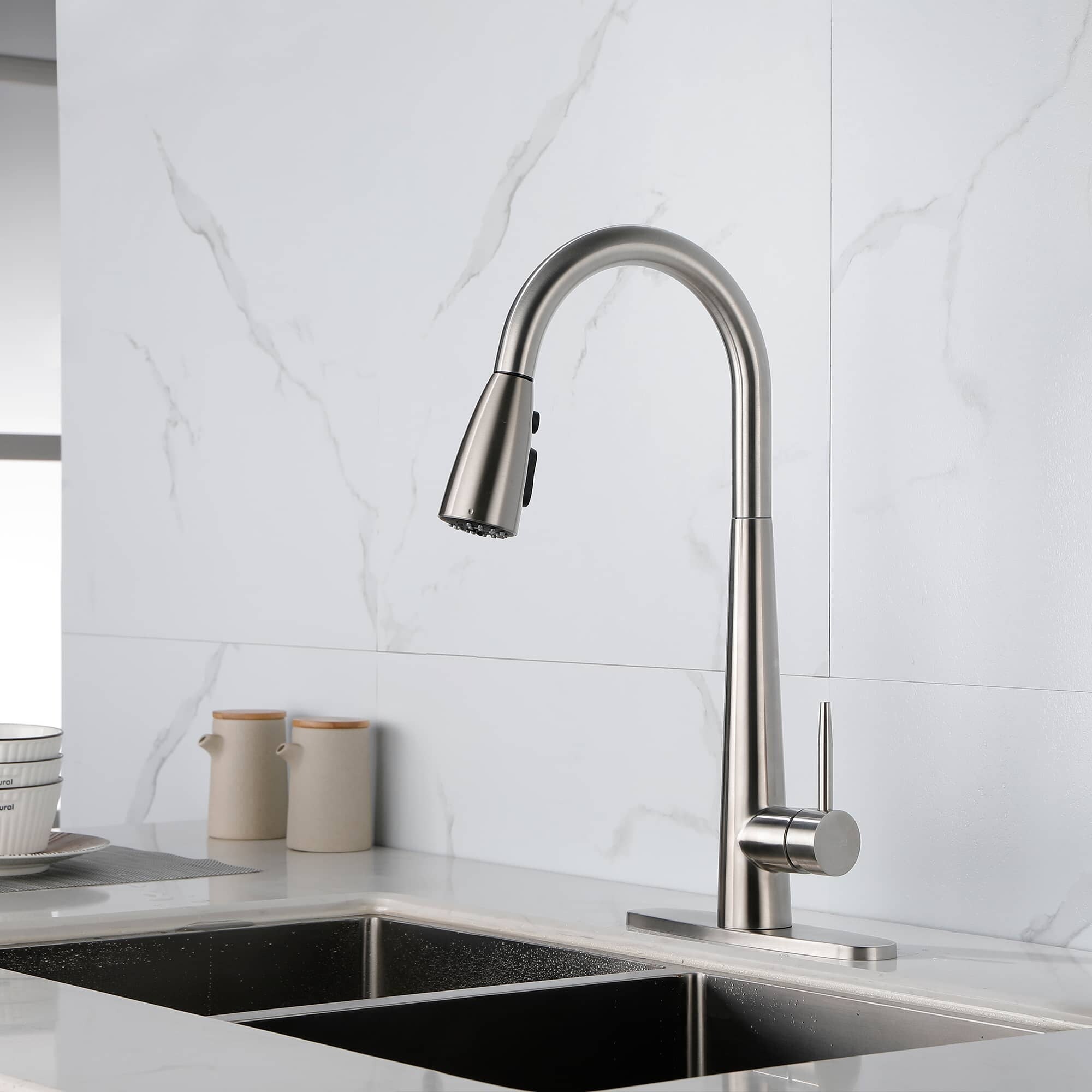 Single Hole Kitchen Faucets With Pull Down Sprayer Single Handle Kitchen Sink Faucet Stainless Steel Modern Vanity Basin Taps