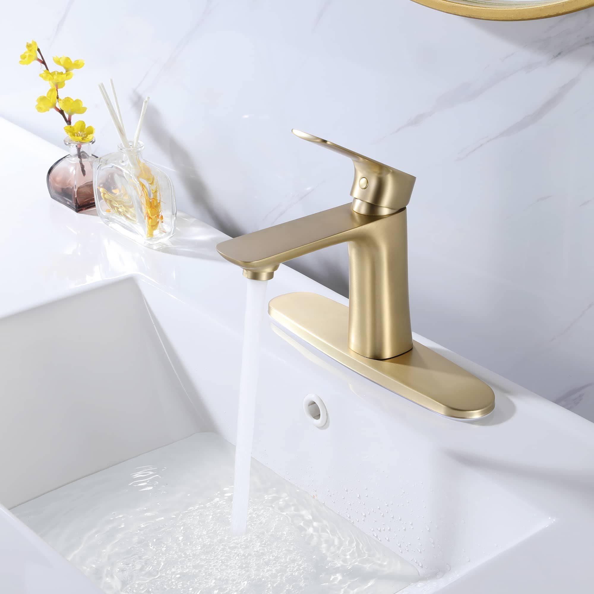 Single Handle Bathroom Sink Faucet With Deck Plate One Holes Bathroom Faucets Modern Vanity Basin Lavatory Mixter Taps
