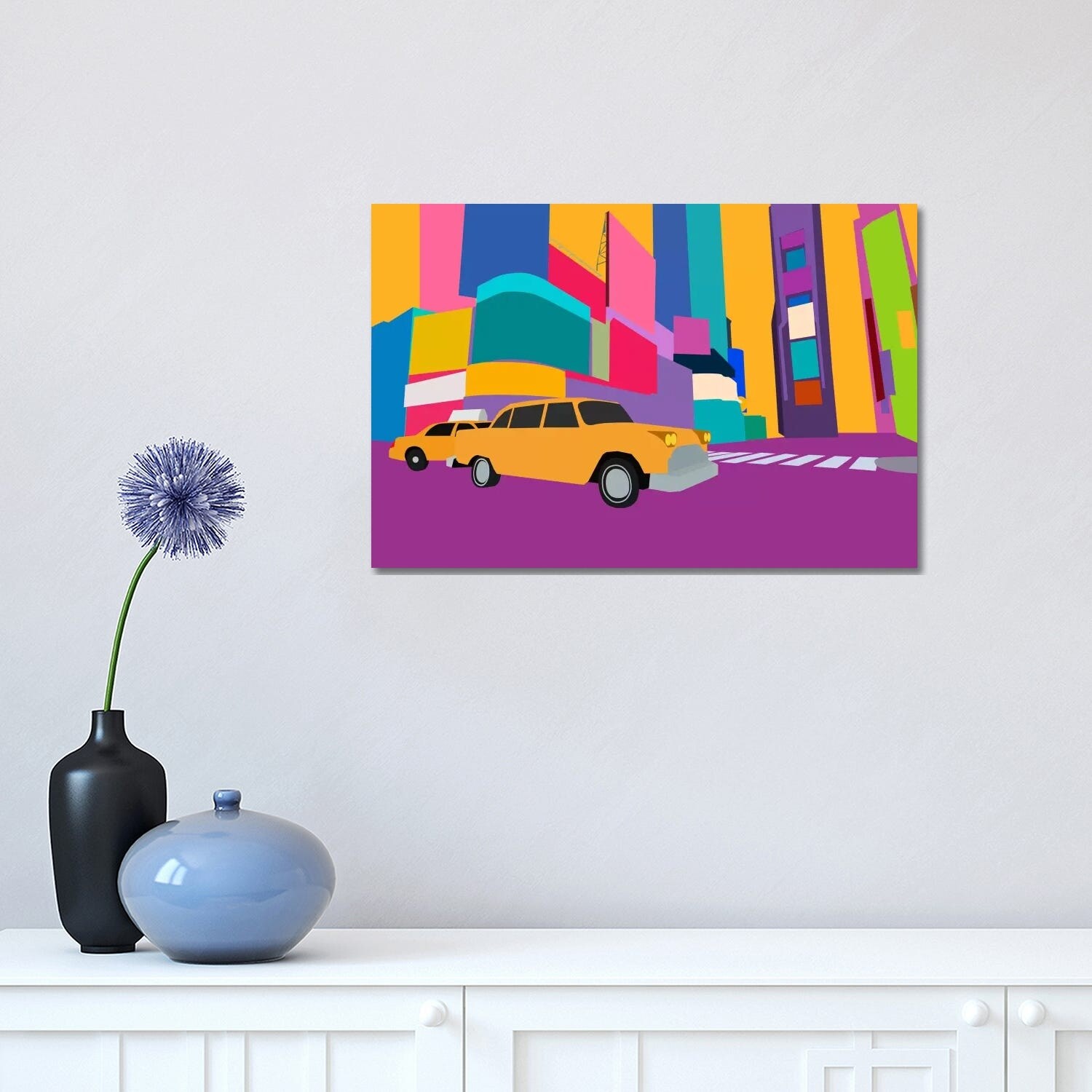 iCanvas "Neon Block NYC Taxi" by Unknown Artist Canvas Print