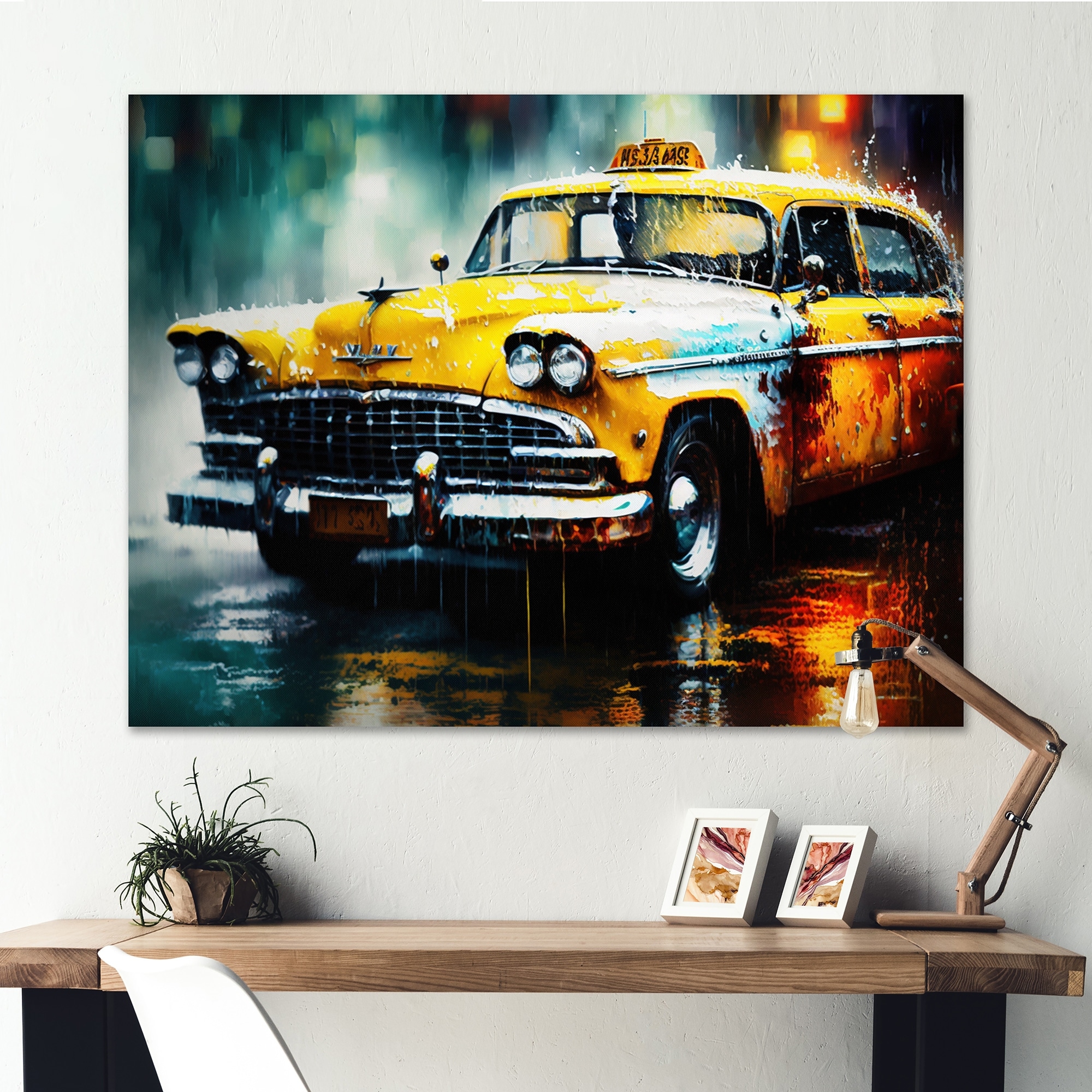 Designart "Taxi In the Rain` I" Retro Car Wall Art Prints