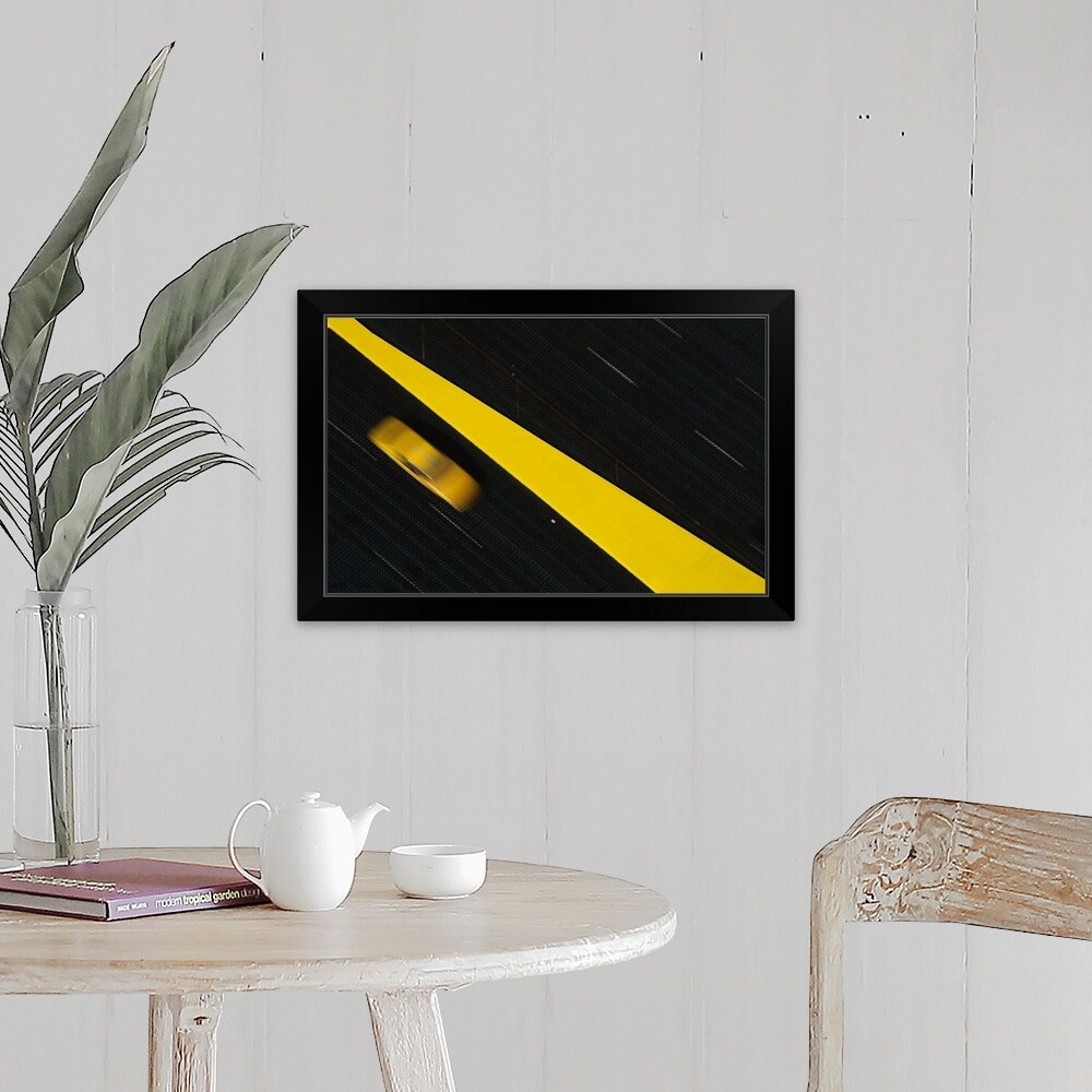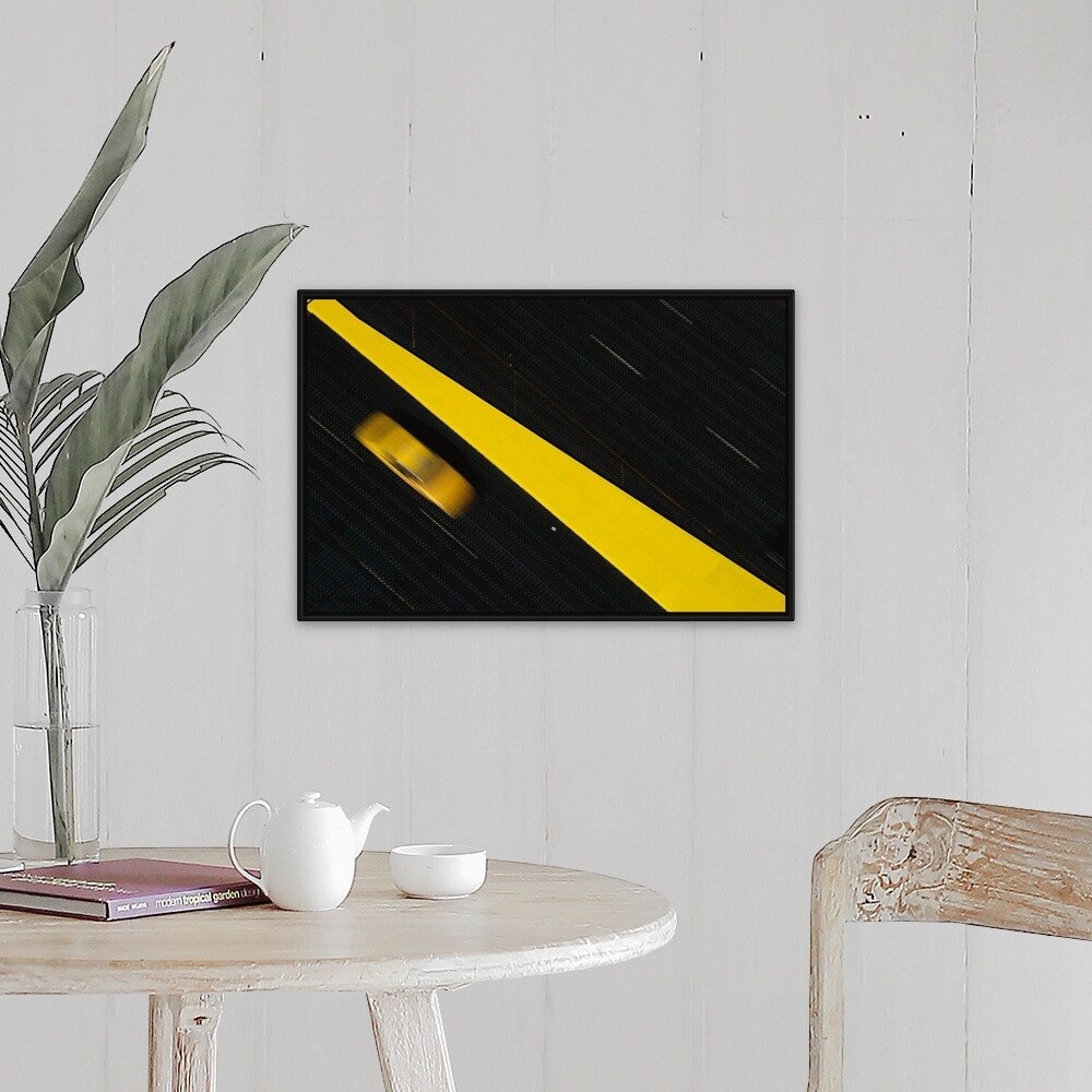 "Blurred Taxi and Dividing Line " Black Float Frame Canvas Art