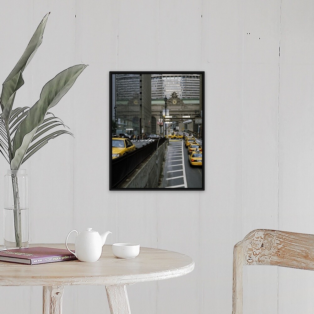 "Yellow taxis on road viewed from Park Avenue tunnel" Black Float Frame Canvas Art