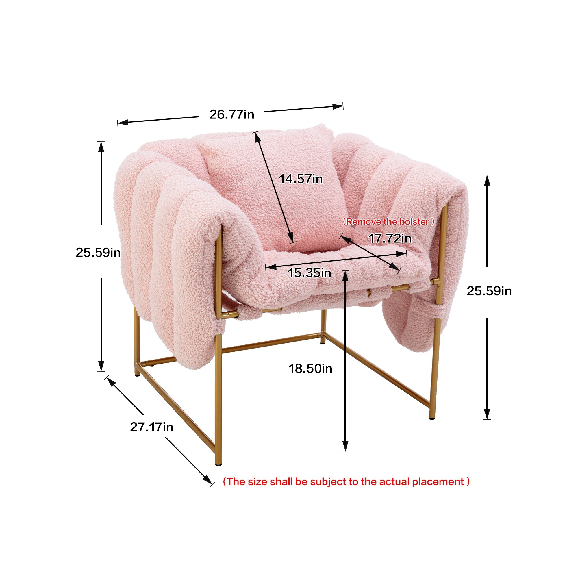Livingroom Accent Chair, Leisure Single Arm Sofa with Teddy Pillow Top and Open Golden Iron Frame Armchairs for Bedroom, Pink