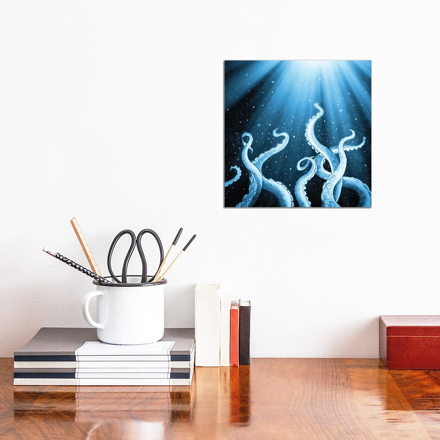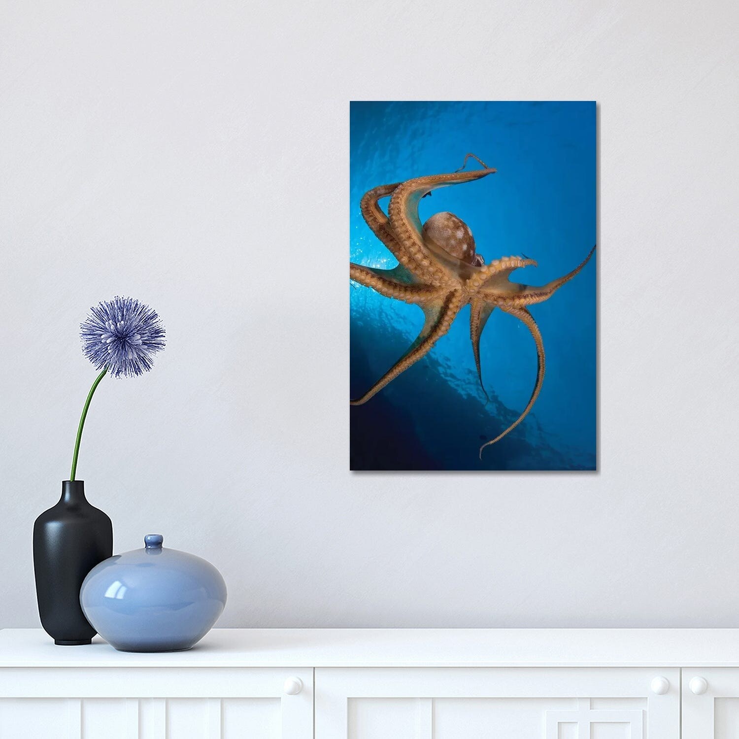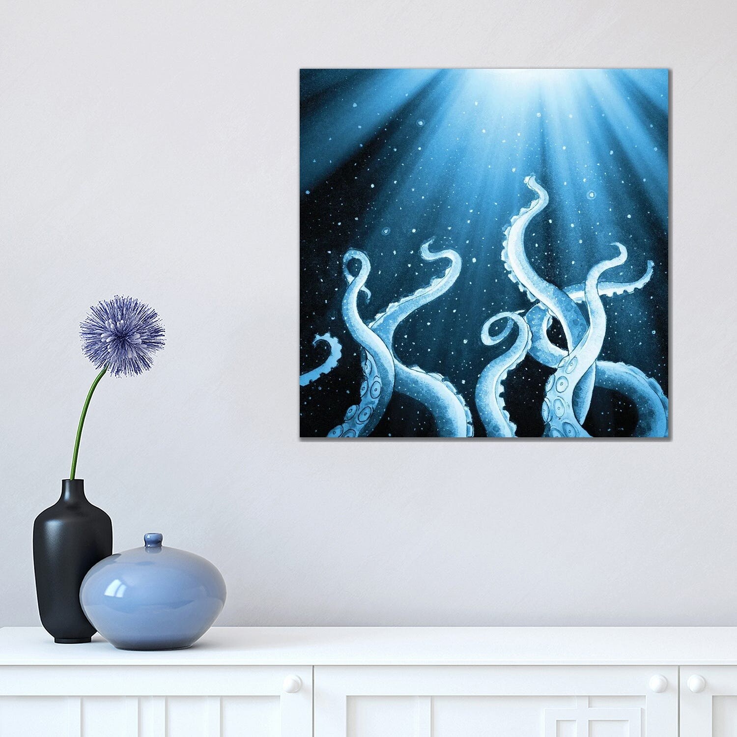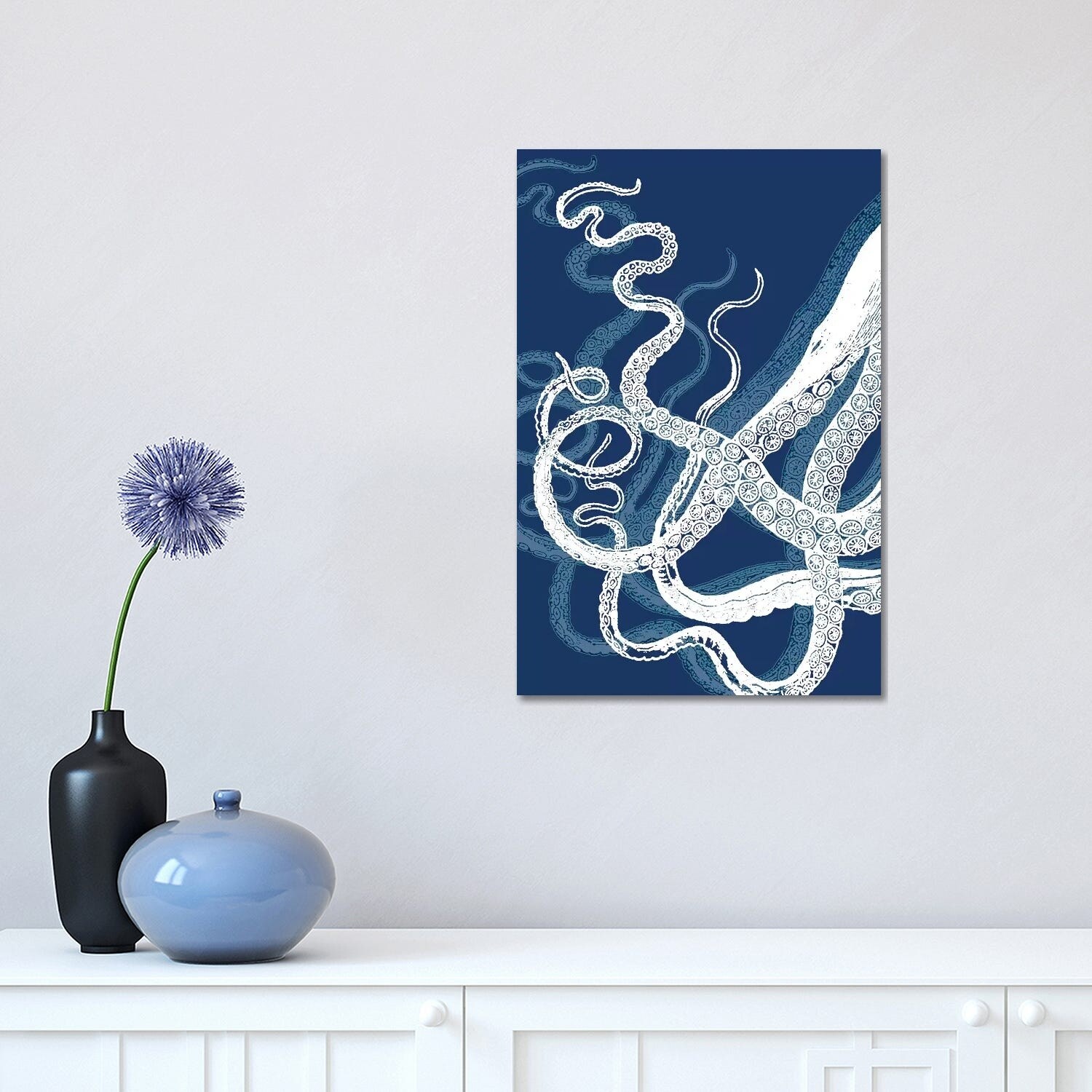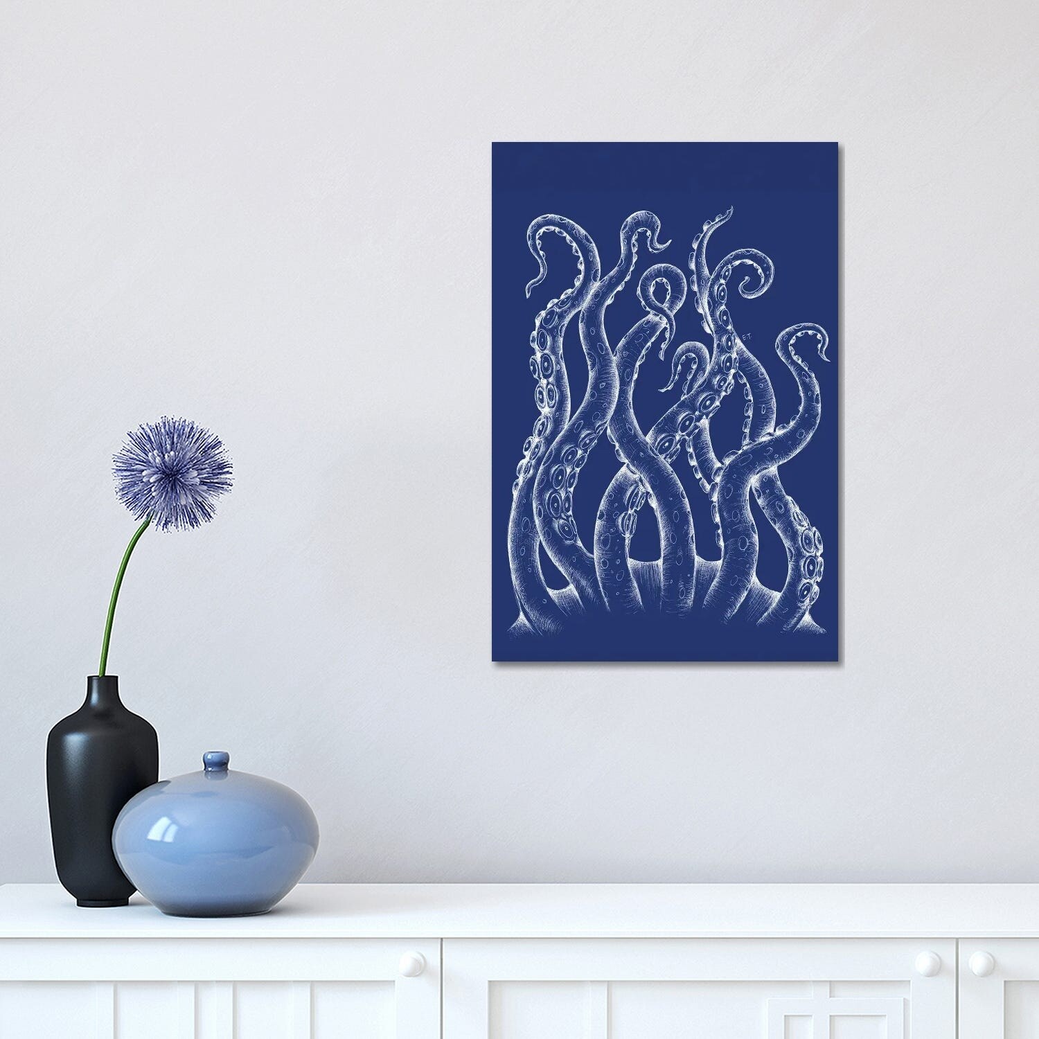 iCanvas "White Tentacles Octopus Blue Ink" by Seven Sirens Studios Canvas Print