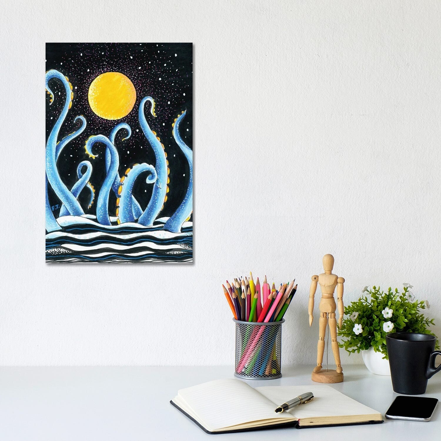 iCanvas "Blue Tentacles Moon And Stars Ink" by Seven Sirens Studios Canvas Print