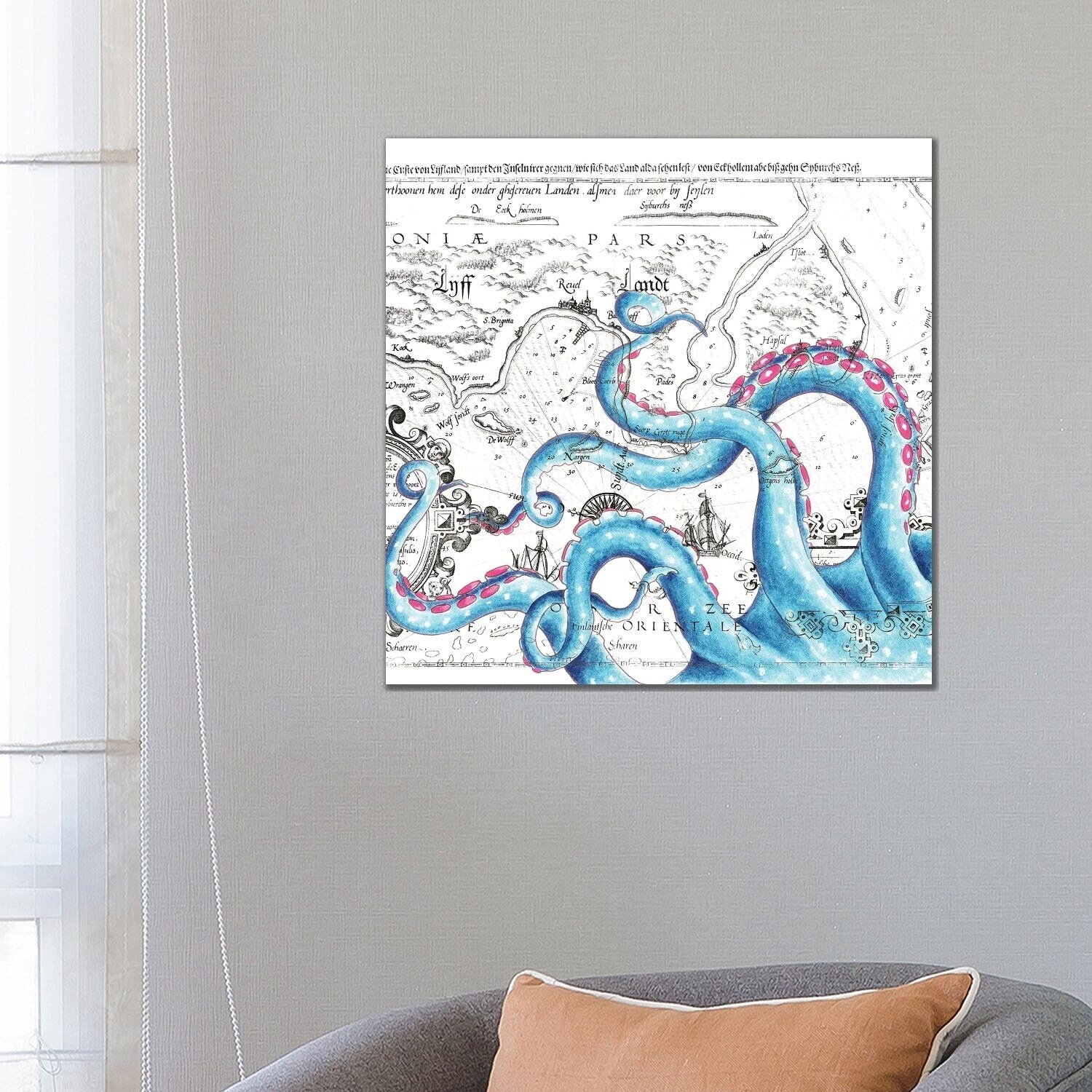 iCanvas "Blue Pink Tentacles Vintage Map" by Seven Sirens Studios Canvas Print