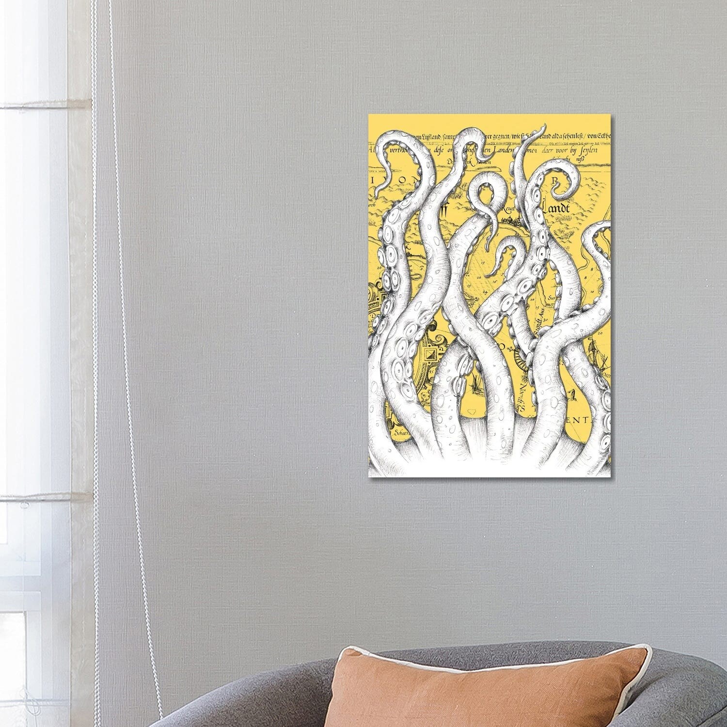 iCanvas "White Tentacles Octopus Yellow Vintage Map" by Seven Sirens Studios Canvas Print