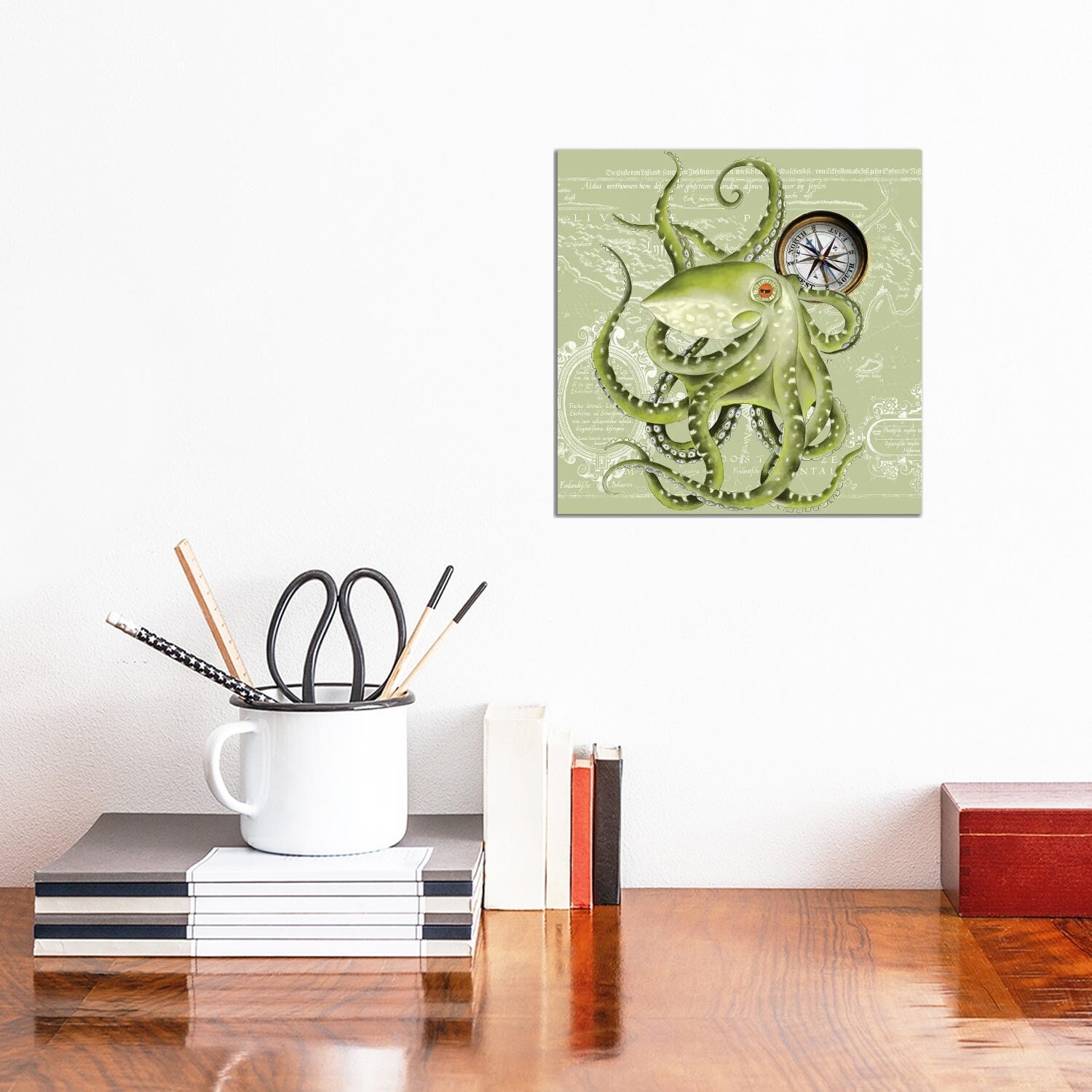 iCanvas "Green Octopus Tentacles Compass Vintage Map" by Seven Sirens Studios Canvas Print