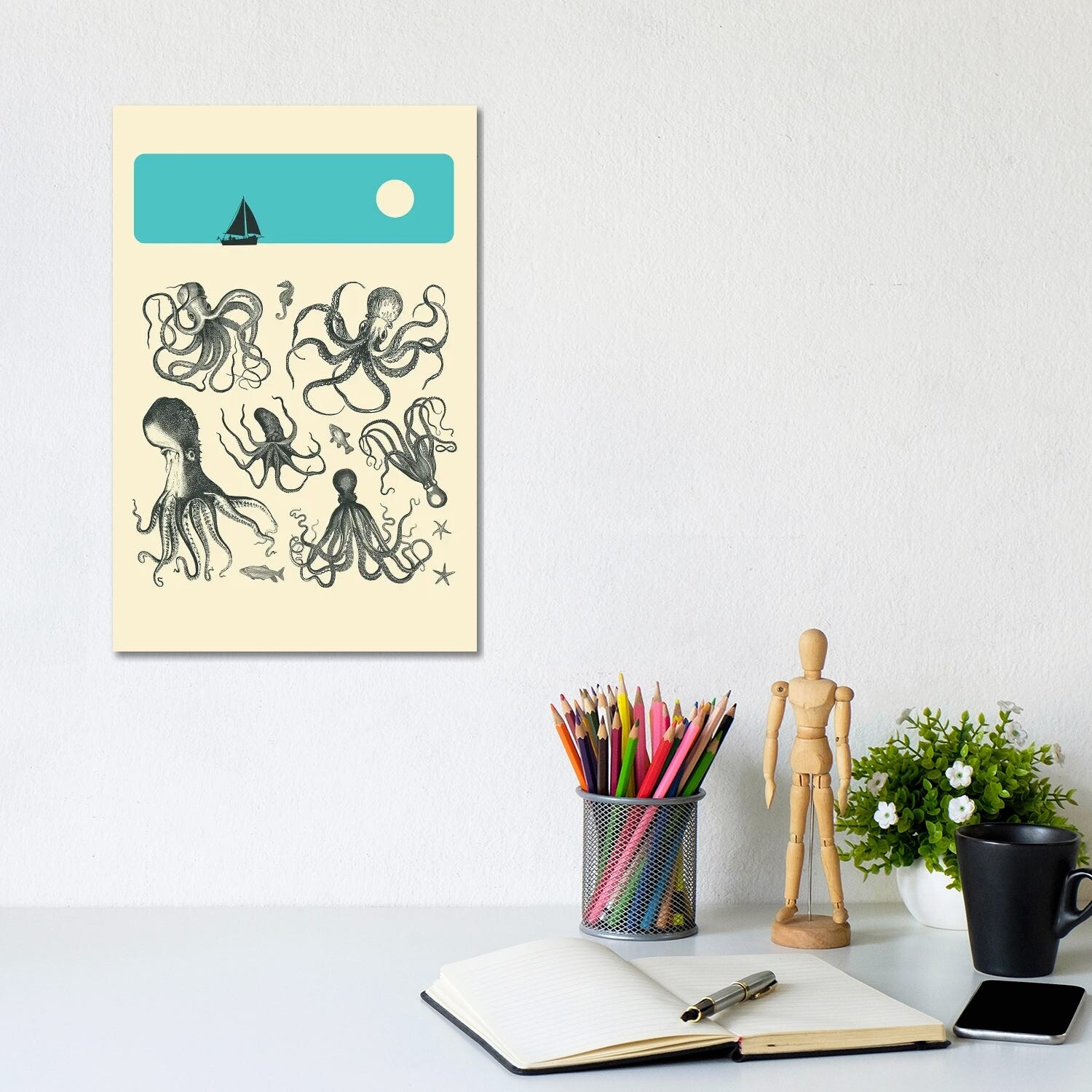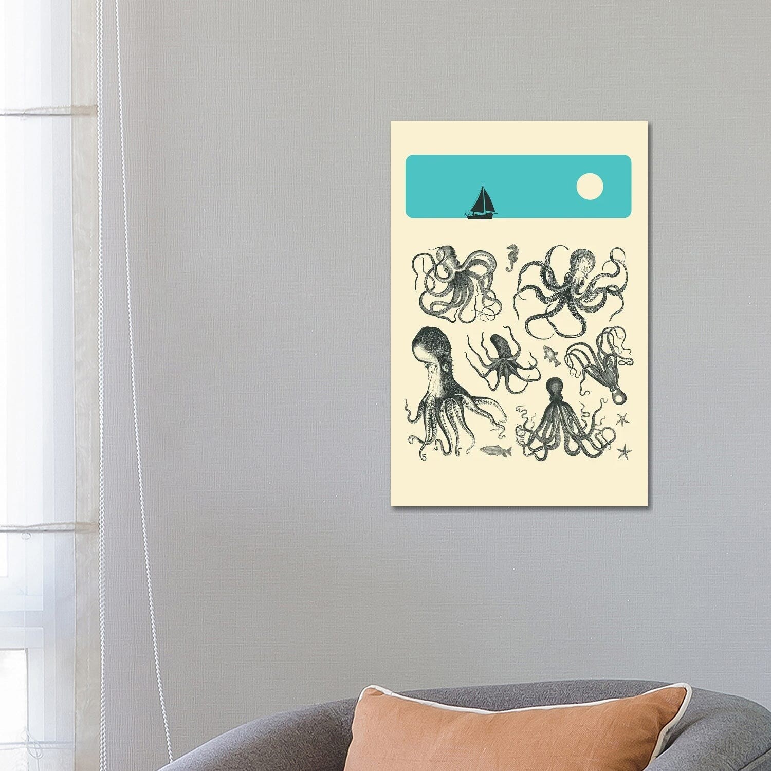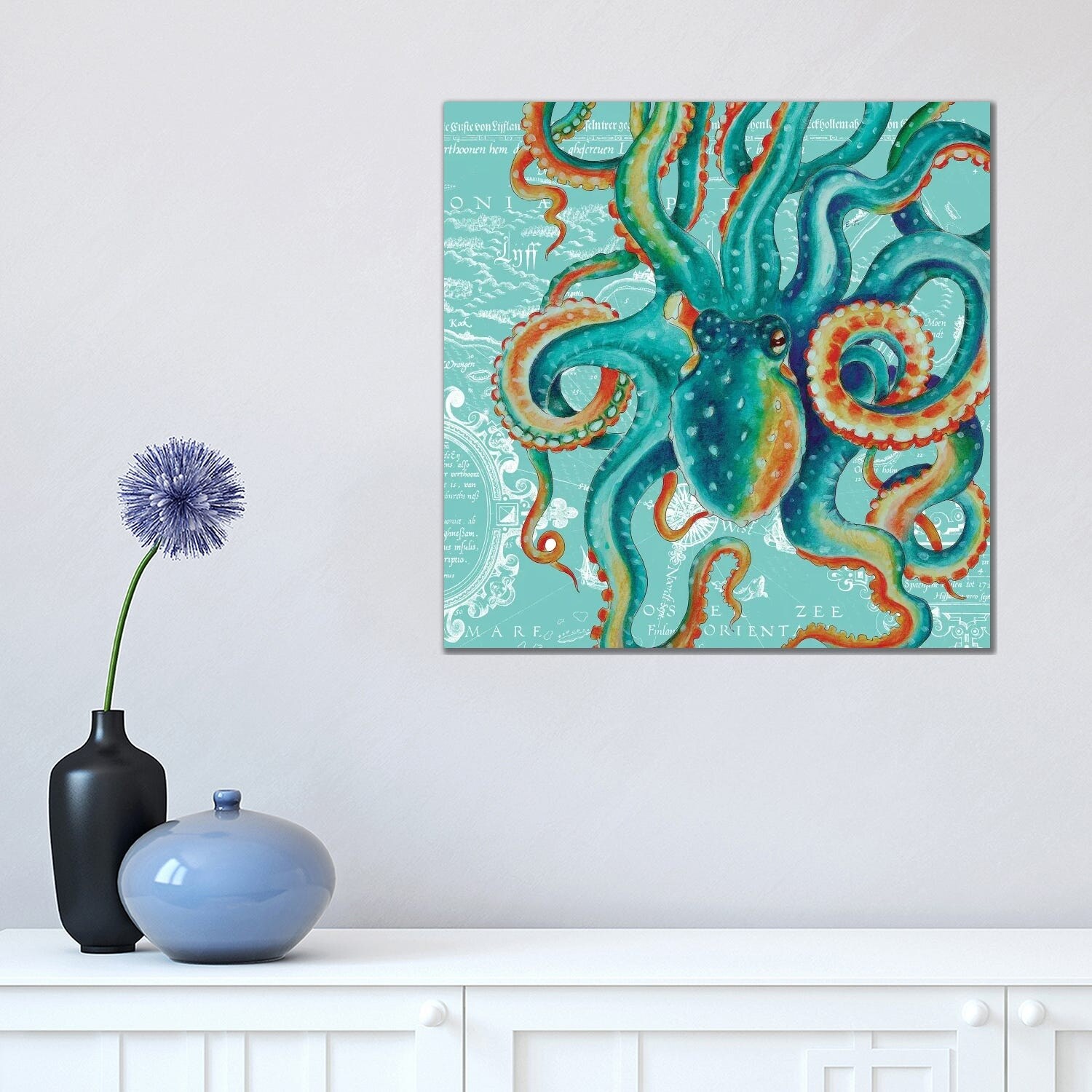 iCanvas "Octopus Teal Tentacles Vintage Map Teal" by Seven Sirens Studios Canvas Print
