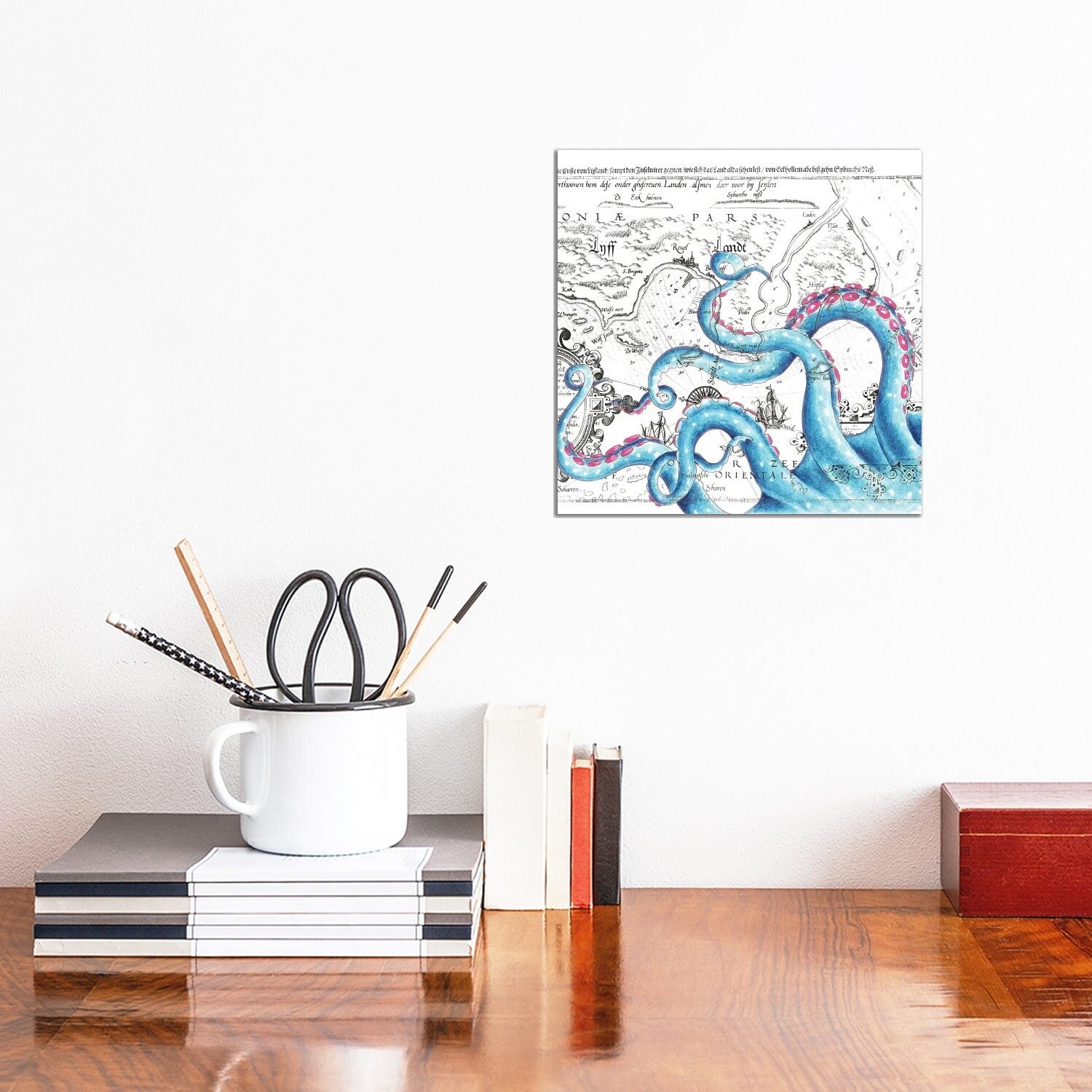 iCanvas "Tentacles Octopus Blue Watercolor Nautical Map" by Seven Sirens Studios Canvas Print
