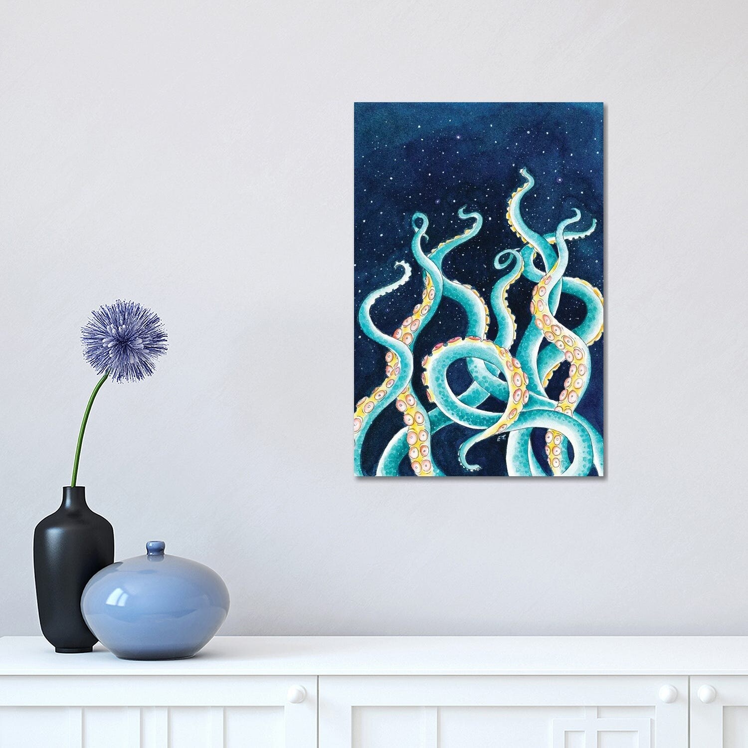 iCanvas "Blue Yellow Tentacles Watercolor" by Seven Sirens Studios Canvas Print
