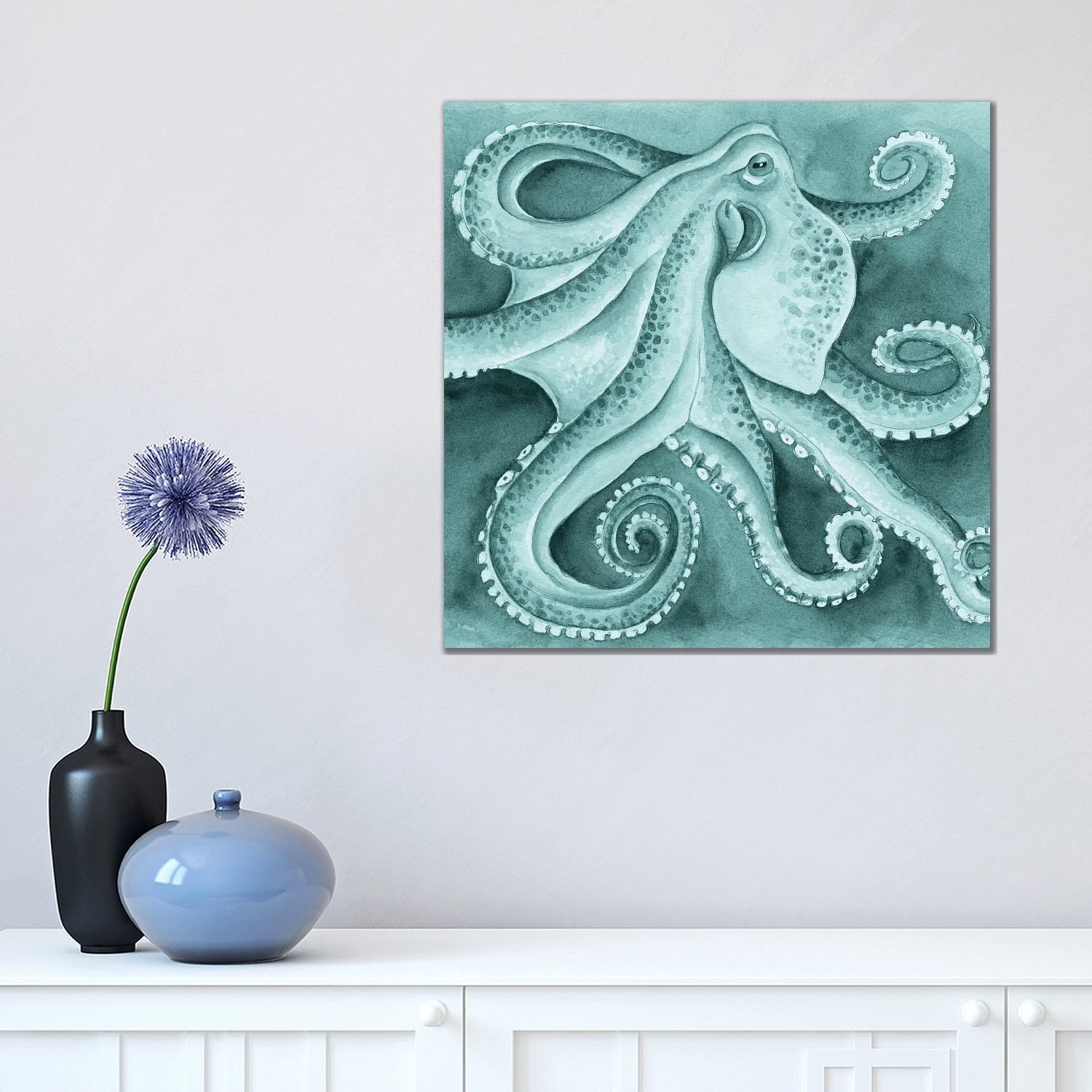 iCanvas "Octopus Teal Tentacles Watercolor Art" by Seven Sirens Studios Canvas Print
