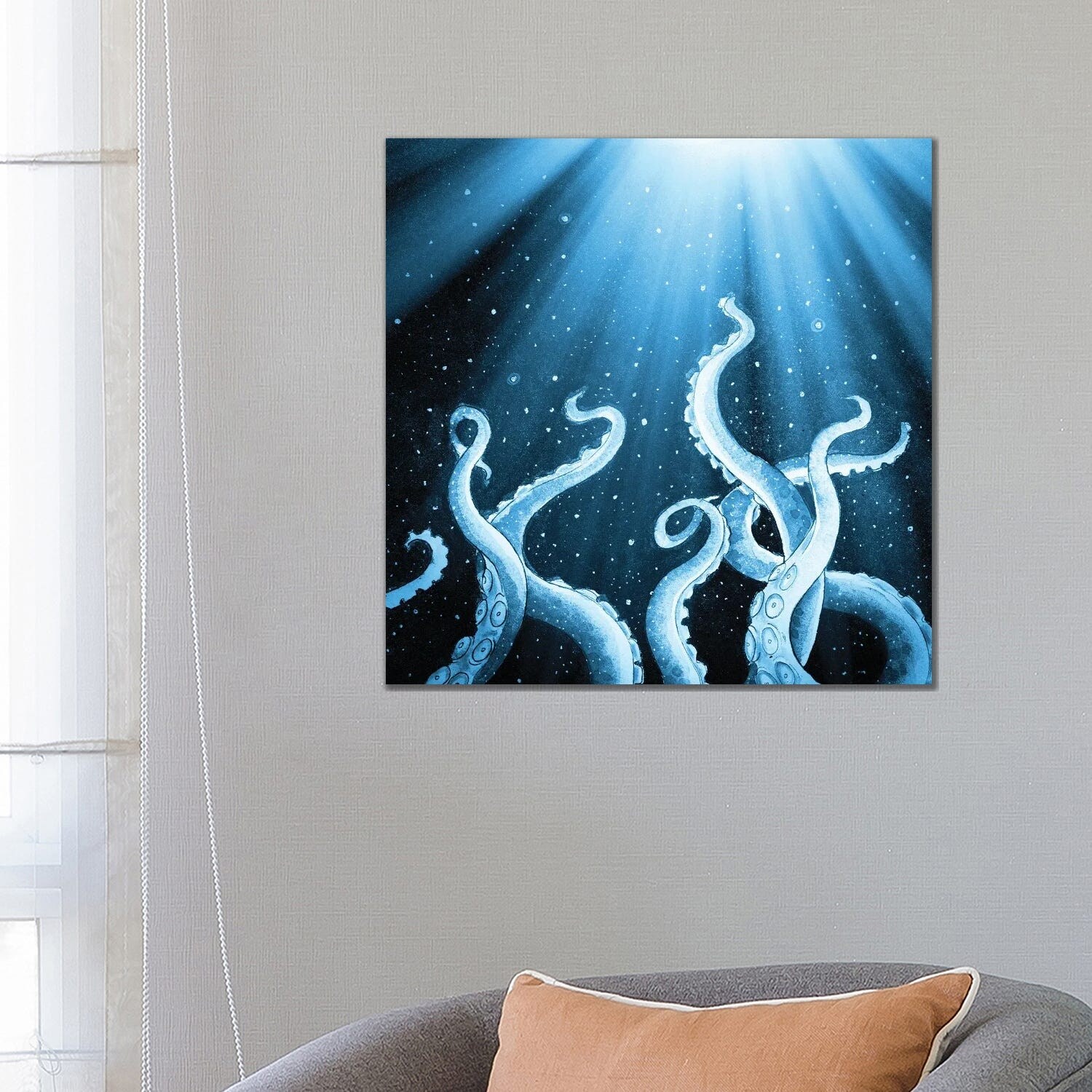 iCanvas "Blue Beige Octopus Tentacles Watercolor" by Seven Sirens Studios Canvas Print