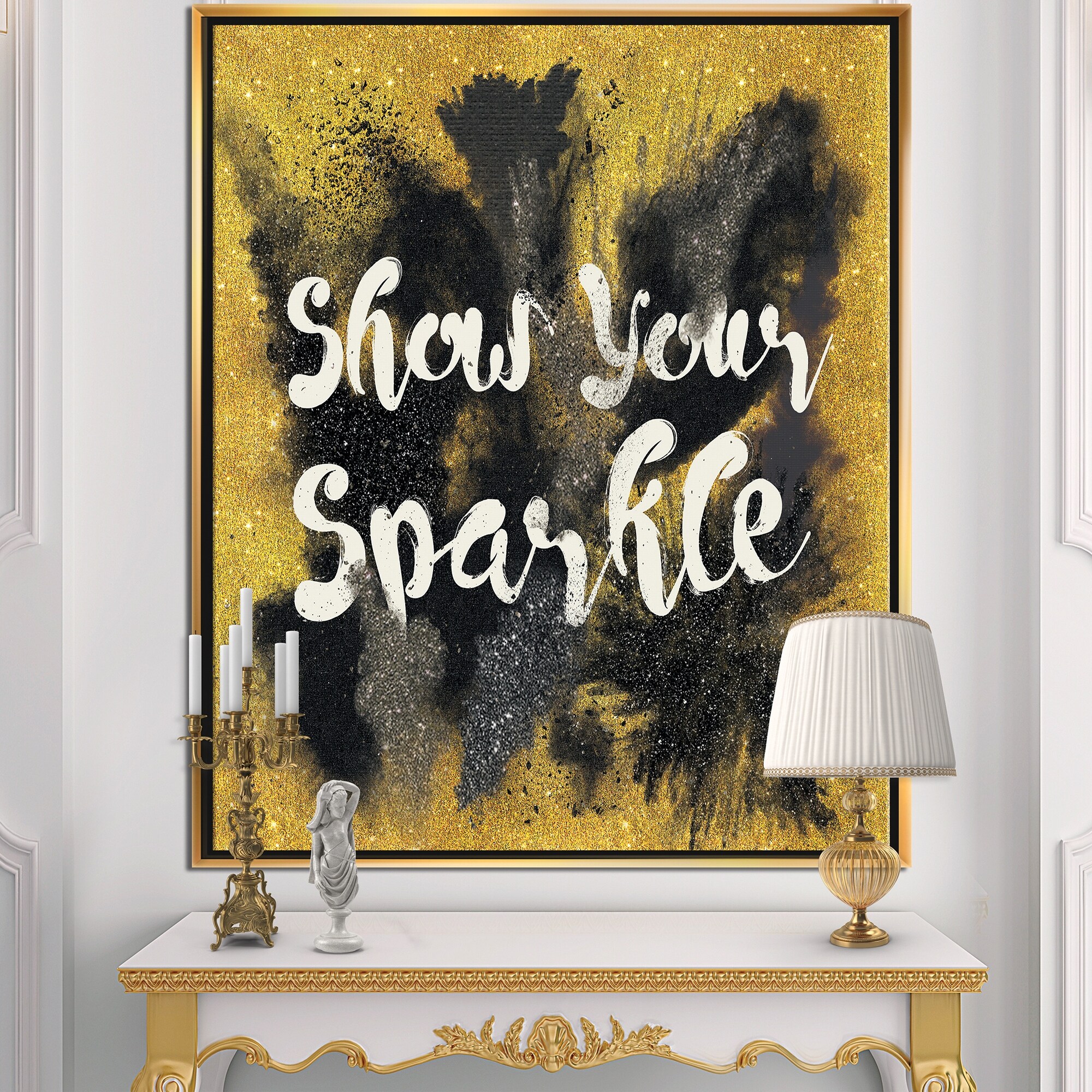 Designart "Show Your Sparkle Quote Black on Gold" Fashion Framed Canvas - Multi-color