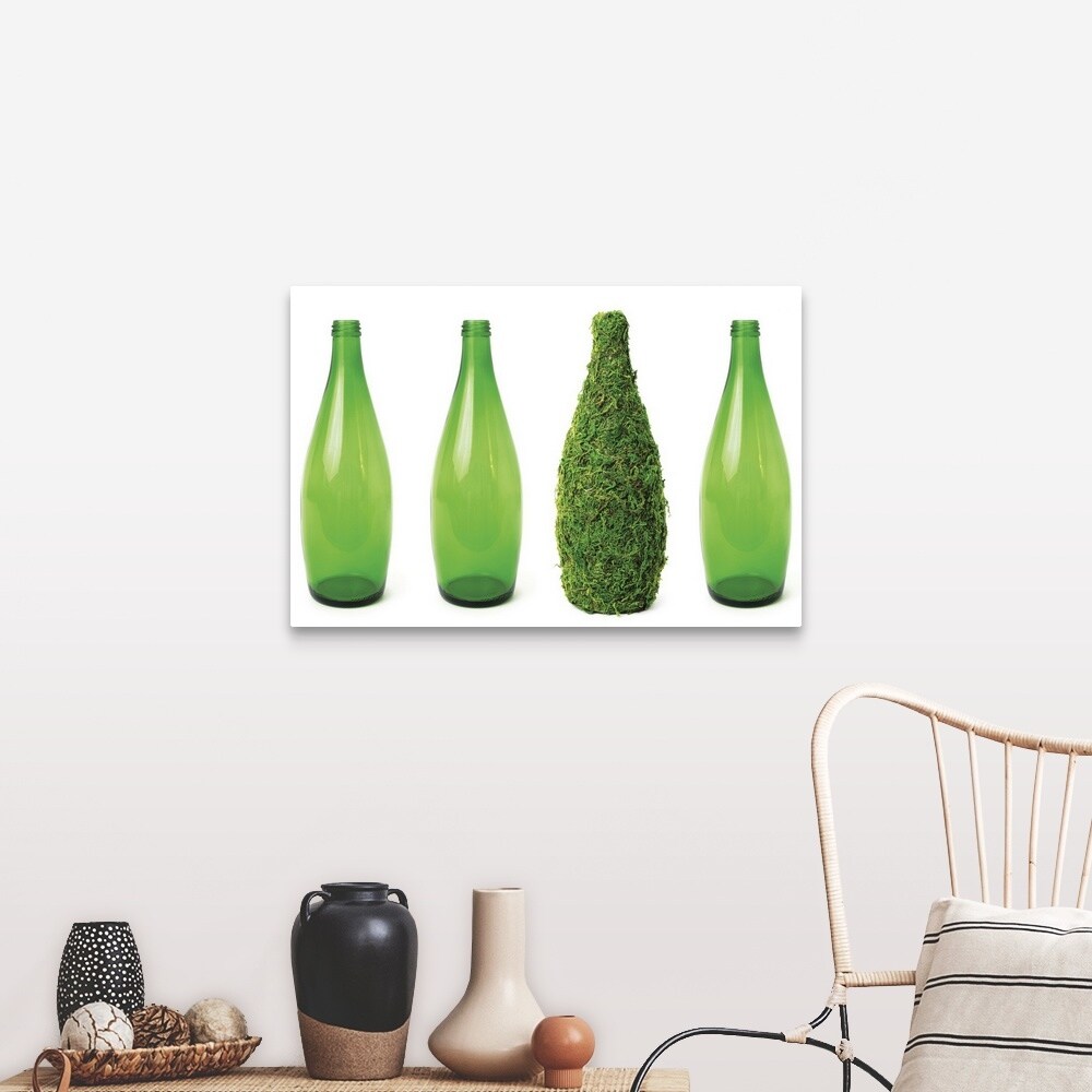 "Green glass bottles showing recycling and conservation concept." Canvas Wall Art