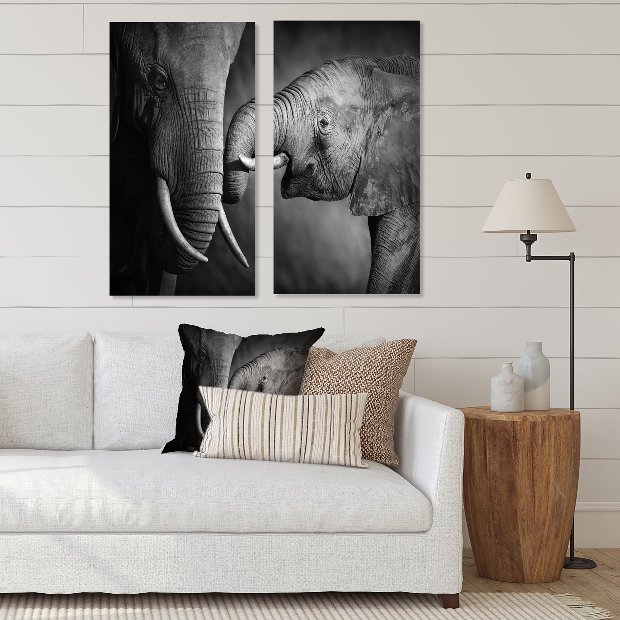 Designart "Elephants Showing Affection" Abstract Canvas Wall Art Print 2 Piece Set