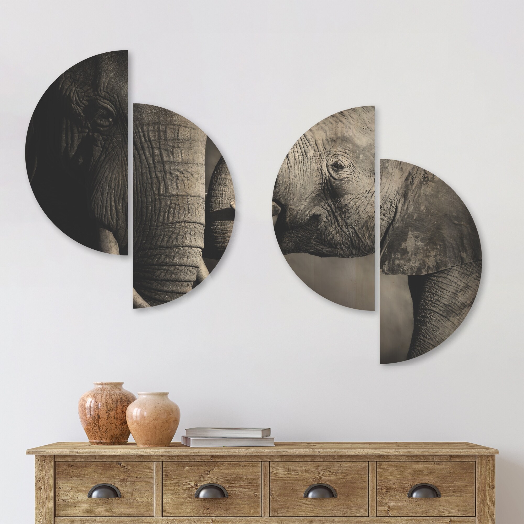 Designart 'Elephants Showing Affection' Abstract Wood Wall Art Set of 4 Half Circles