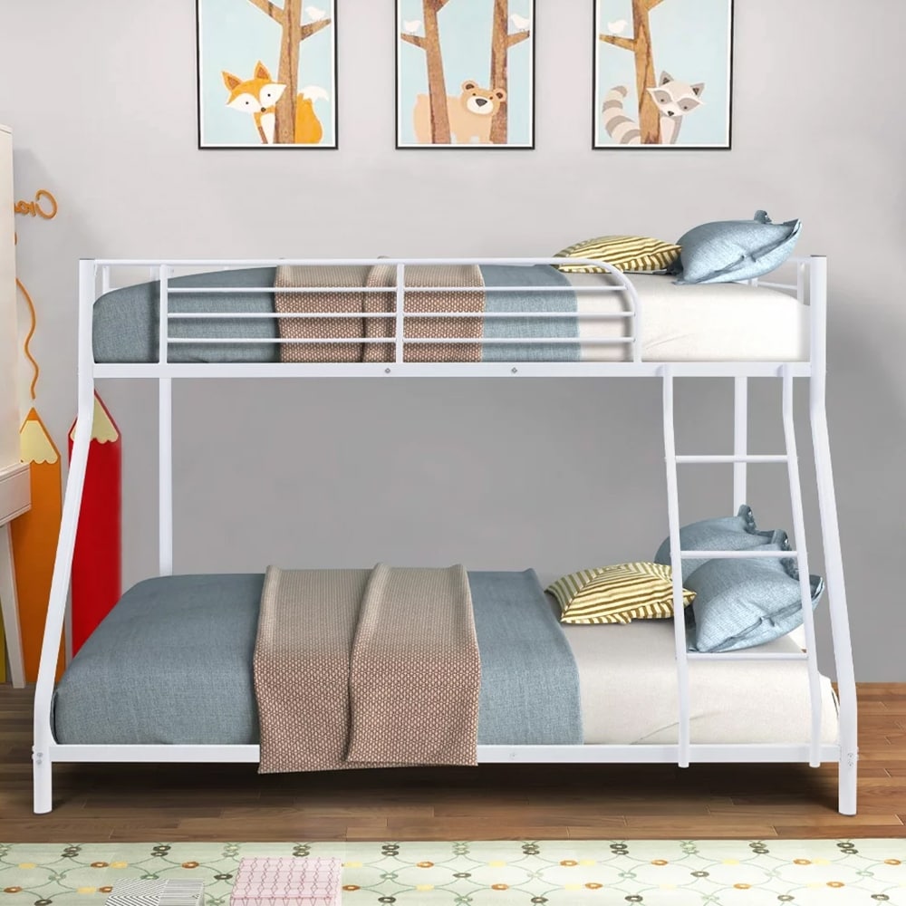 Twin-over-full bunk bed modern style steel frame bunk bed with safety rail, built-in ladder for bedroom