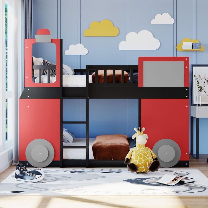 Twin Over Twin Bunk Bed Wooden Bed, Train Shape Design