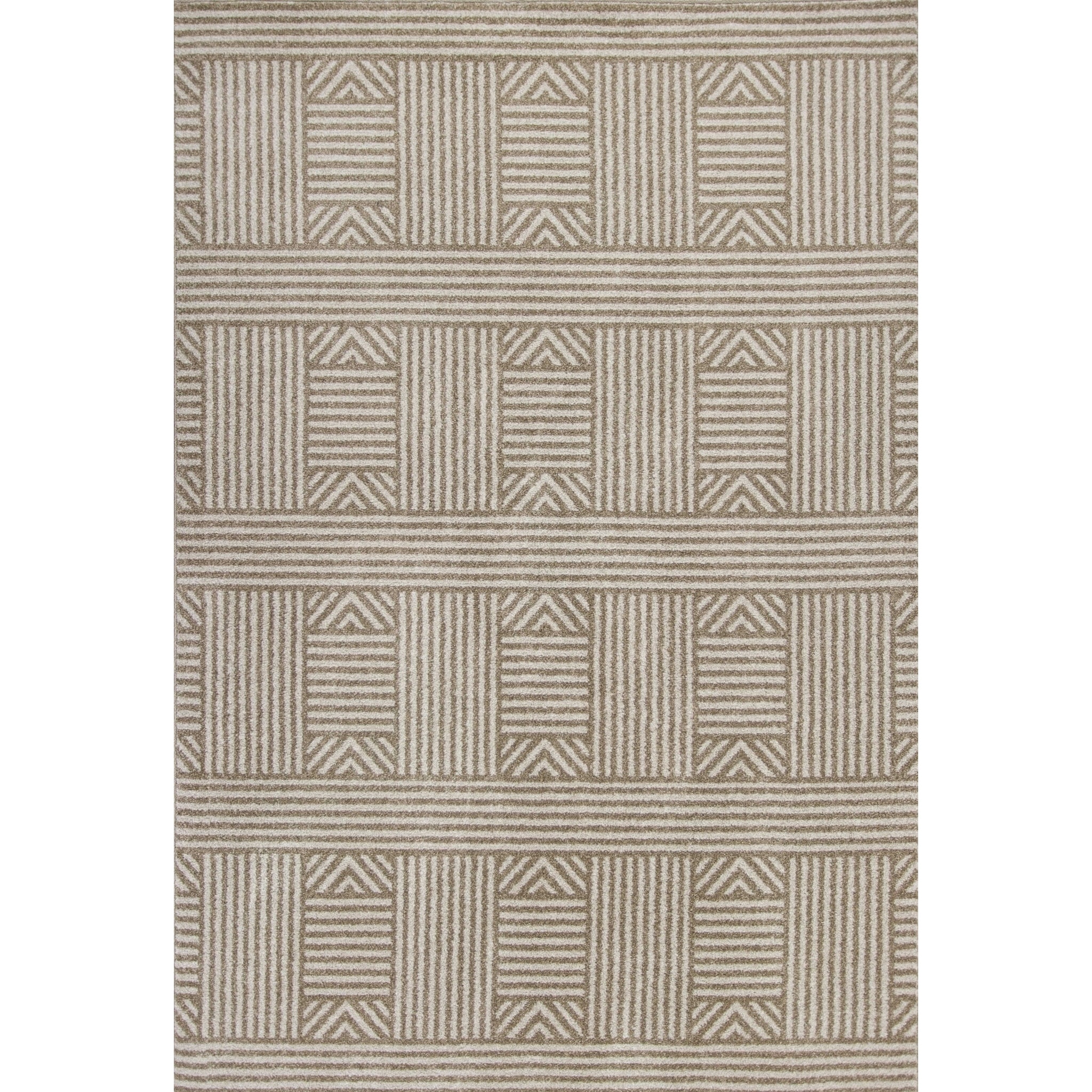 HomeRoots 5' x 8' Beige Geo Lines UV Treated Area Rug - 5' Octagon